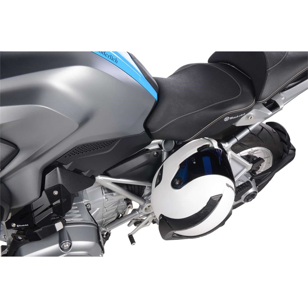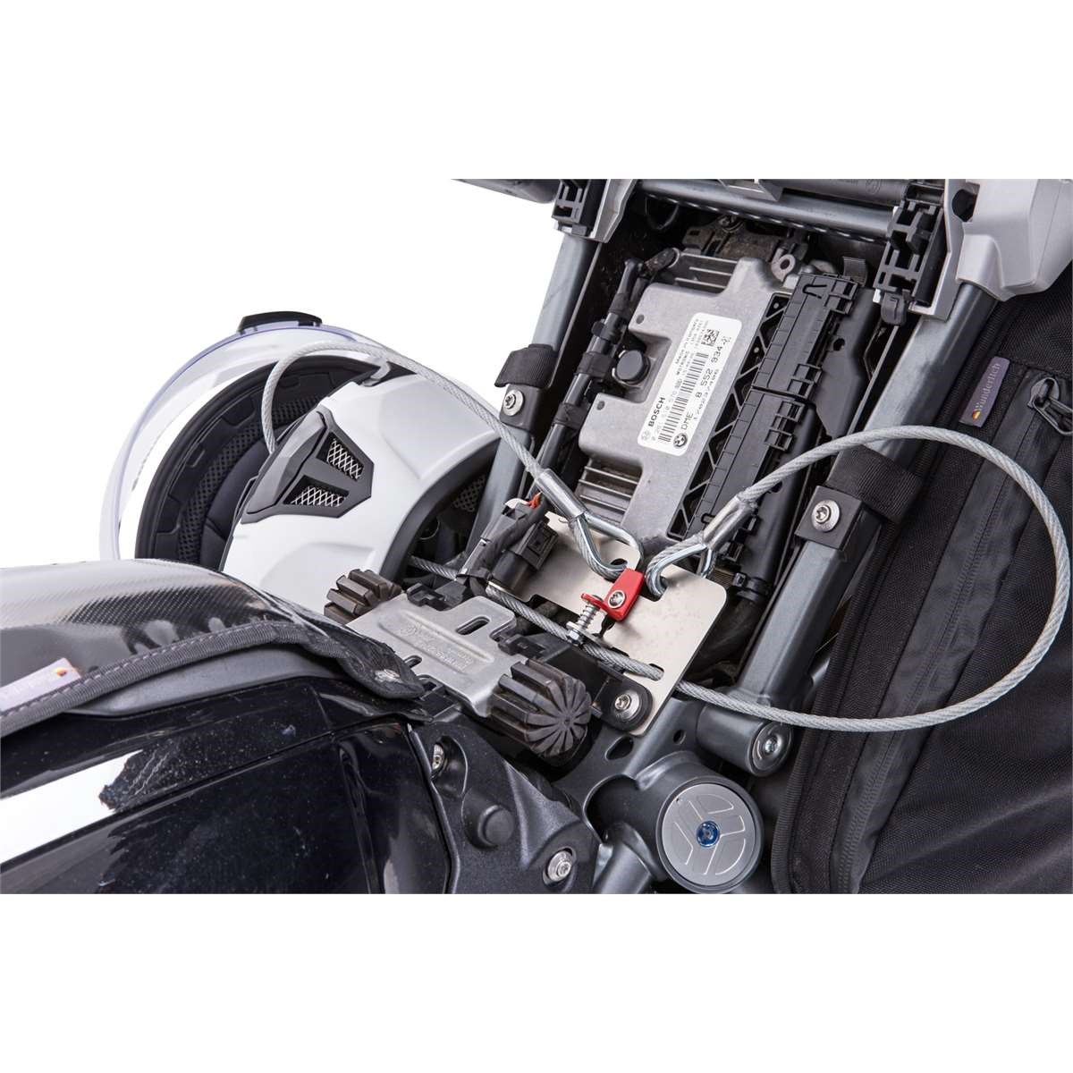 Die wohl sicherste und einfach zu handhabende Helm-Sicherung. Die robuste Basis unserer Helm Diebstahlsicherung aus Aluminium wird unter der Sitzbank sicher befestigt. Die Länge des Seils ist so bemessen, dass bis zu zwei Helme gesichert werden können. Das Drahtseil hat einen Durchmesser von 4 mm. Die solide ausgelegten Kauschen der Seilenden werden in die Einhängevorrichtung der Haltebasis eingehängt und durch einen federunterstützten Riegel sicher fixiert. Er wird zusätzlich von der montierten und abgeschlossenen Sitzbank gesichert. Damit ist es unmöglich, die Schlaufen ohne das Anheben der Sitzbank, zu öffnen. Dieses Sicherungsmerkmal finden Sie nur bei uns. Ein weiterer Vorteil ist, dass kein weiteres Schloss erforderlich ist und man keinen weiteren Schlüssel mit sich führen muss. Die transparente, großzügig dimensionierte Ummantelung des Sicherungsseils aus Silikon schont Helme wie Motorrad vor Scheuerstellen und Lackschäden. Das Seil wird bei Nichtgebrauch -stets griffbereit- platzsparend unter der Sitzbank verstaut. Unsere »HELM-LOCK« Diebstahlsicherung ist einfach in der Anwendung und enorm hilfreich, so dass Sie diese nicht mehr missen möchten.