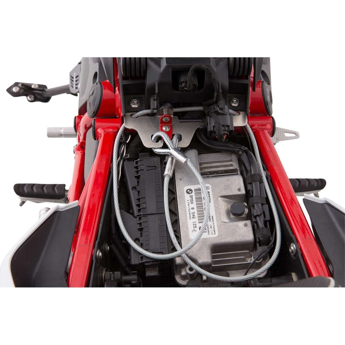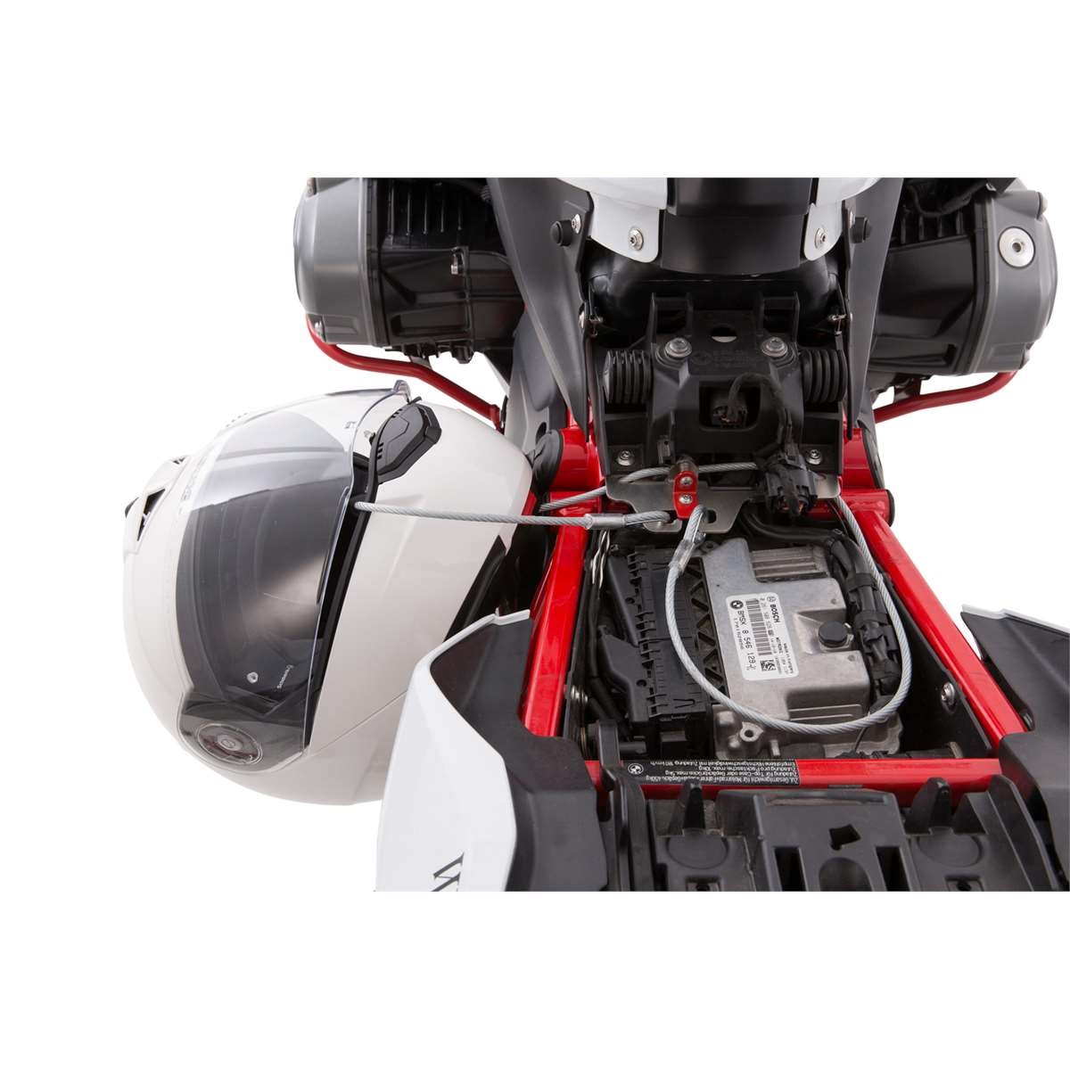 Die wohl sicherste und einfach zu handhabende Helm-Sicherung. Die robuste Basis unserer Helm Diebstahlsicherung aus Aluminium wird unter der Sitzbank sicher befestigt. Die Länge des Seils ist so bemessen, dass bis zu zwei Helme gesichert werden können. Das Drahtseil hat einen Durchmesser von 4 mm. Die solide ausgelegten Kauschen der Seilenden werden in die Einhängevorrichtung der Haltebasis eingehängt und durch einen federunterstützten Riegel sicher fixiert. Er wird zusätzlich von der montierten und abgeschlossenen Sitzbank gesichert. Damit ist es unmöglich, die Schlaufen ohne das Anheben der Sitzbank, zu öffnen. Dieses Sicherungsmerkmal finden Sie nur bei uns. Ein weiterer Vorteil ist, dass kein weiteres Schloss erforderlich ist und man keinen weiteren Schlüssel mit sich führen muss. Die transparente, großzügig dimensionierte Ummantelung des Sicherungsseils aus Silikon schont Helme wie Motorrad vor Scheuerstellen und Lackschäden. Das Seil wird bei Nichtgebrauch -stets griffbereit- platzsparend unter der Sitzbank verstaut. Unsere »HELM-LOCK« Diebstahlsicherung ist einfach in der Anwendung und enorm hilfreich, so dass Sie diese nicht mehr missen möchten.