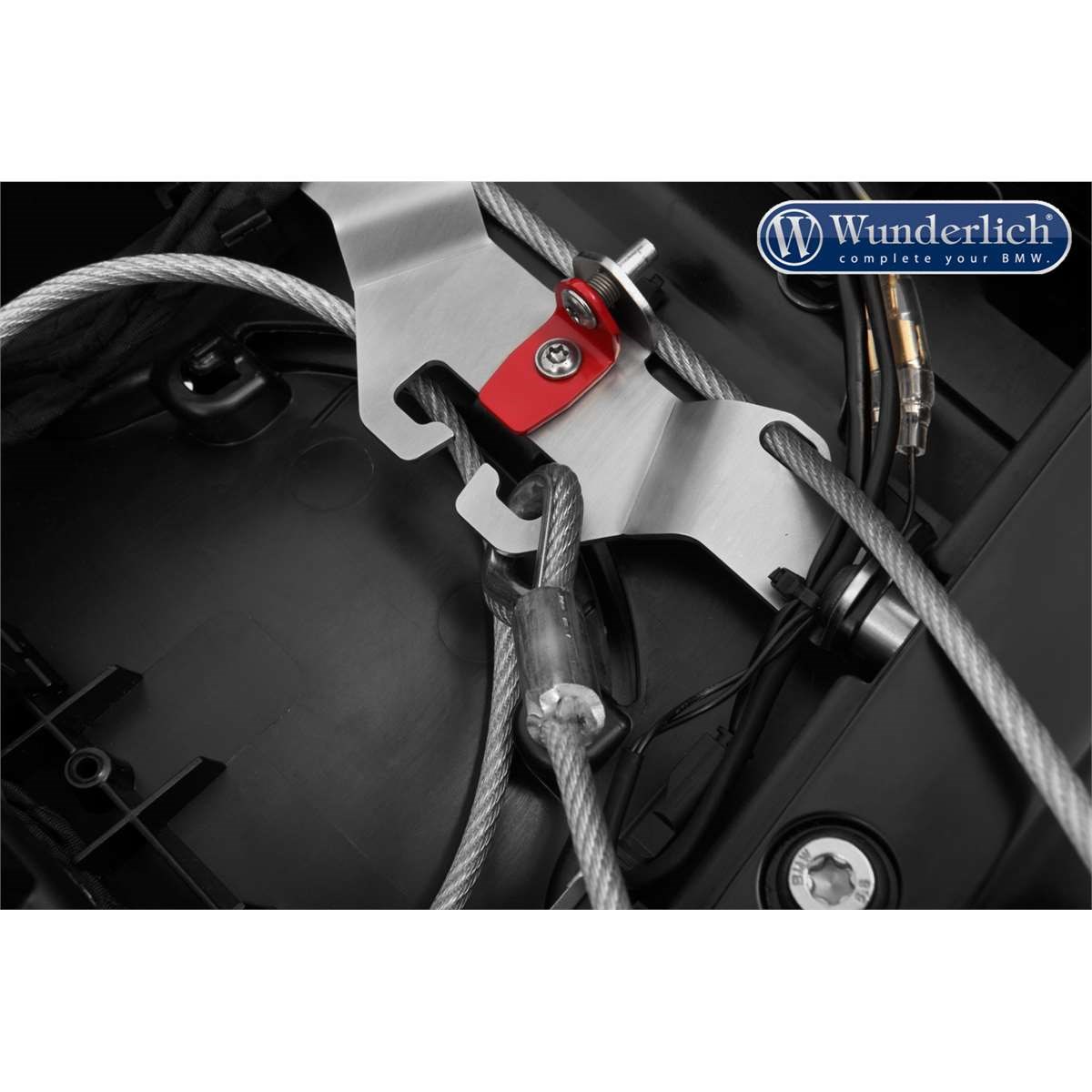 Die wohl sicherste und einfach zu handhabende Helm-Sicherung. Die robuste Basis unserer Helm Diebstahlsicherung aus Aluminium wird unter der Sitzbank sicher befestigt. Die Länge des Seils ist so bemessen, dass bis zu zwei Helme gesichert werden können. Das Drahtseil hat einen Durchmesser von 4 mm. Die solide ausgelegten Kauschen der Seilenden werden in die Einhängevorrichtung der Haltebasis eingehängt und durch einen federunterstützten Riegel sicher fixiert. Er wird zusätzlich von der montierten und abgeschlossenen Sitzbank gesichert. Damit ist es unmöglich, die Schlaufen ohne das Anheben der Sitzbank, zu öffnen. Dieses Sicherungsmerkmal finden Sie nur bei uns. Ein weiterer Vorteil ist, dass kein weiteres Schloss erforderlich ist und man keinen weiteren Schlüssel mit sich führen muss. Die transparente, großzügig dimensionierte Ummantelung des Sicherungsseils aus Silikon schont Helme wie Motorrad vor Scheuerstellen und Lackschäden. Das Seil wird bei Nichtgebrauch -stets griffbereit- platzsparend unter der Sitzbank verstaut. Unsere »HELM-LOCK« Diebstahlsicherung ist einfach in der Anwendung und enorm hilfreich, so dass Sie diese nicht mehr missen möchten.