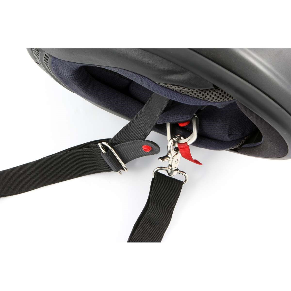 Dieser praktische Begleiter passt zu allen Helmen mit einem Doppel-D-Ring-Verschluss: Der Trageriemen wird einfach mit dem Doppel-D-Ring Verschluss verbunden.