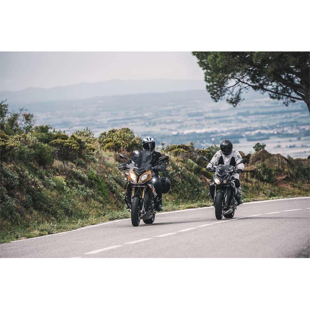 Deshalb haben wir diese Flaps für die S 1000 XR entworfen. Diese Flaps schützen den XR-Fahrer effektiv vor Fahrtwind und Witterungseinflüssen, die seitlich am Cockpit vorbei strömen und verhindern zuverlässig Verwirbelungen in diesem Bereich. Die an dieser Stelle an einer ungeschützten XR entstehenden Probleme können sich sogar noch auf die von uns entwickelten sehr guten Tourenscheiben negativ auswirken.