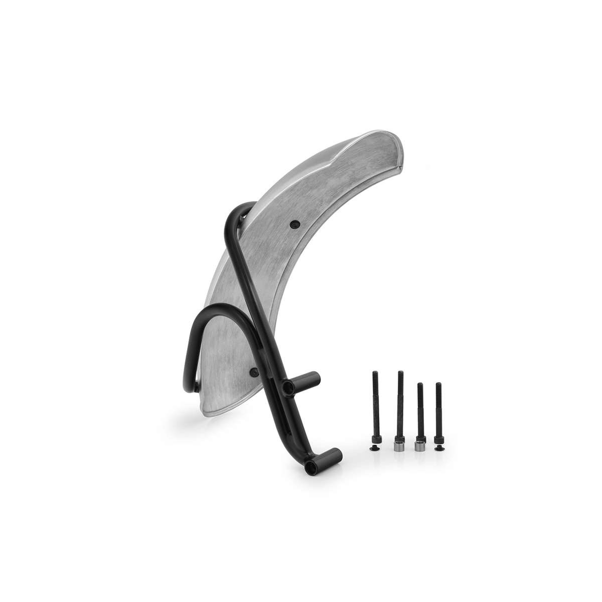 Der Hinterrad-Kotflügel der WunderBob aus Aluminium wird sicher und schwingungsfrei von dem aufwendig gebogenen und von Hand verschweißten Halter aus Präzisionsstahlrohr aufgenommen. Der Kotflügel schmiegt sich um den Reifen und nimmt damit Spritzwasser direkt auf. Das Heck bleibt mit diesem Kotflügel der WunderBob frei.