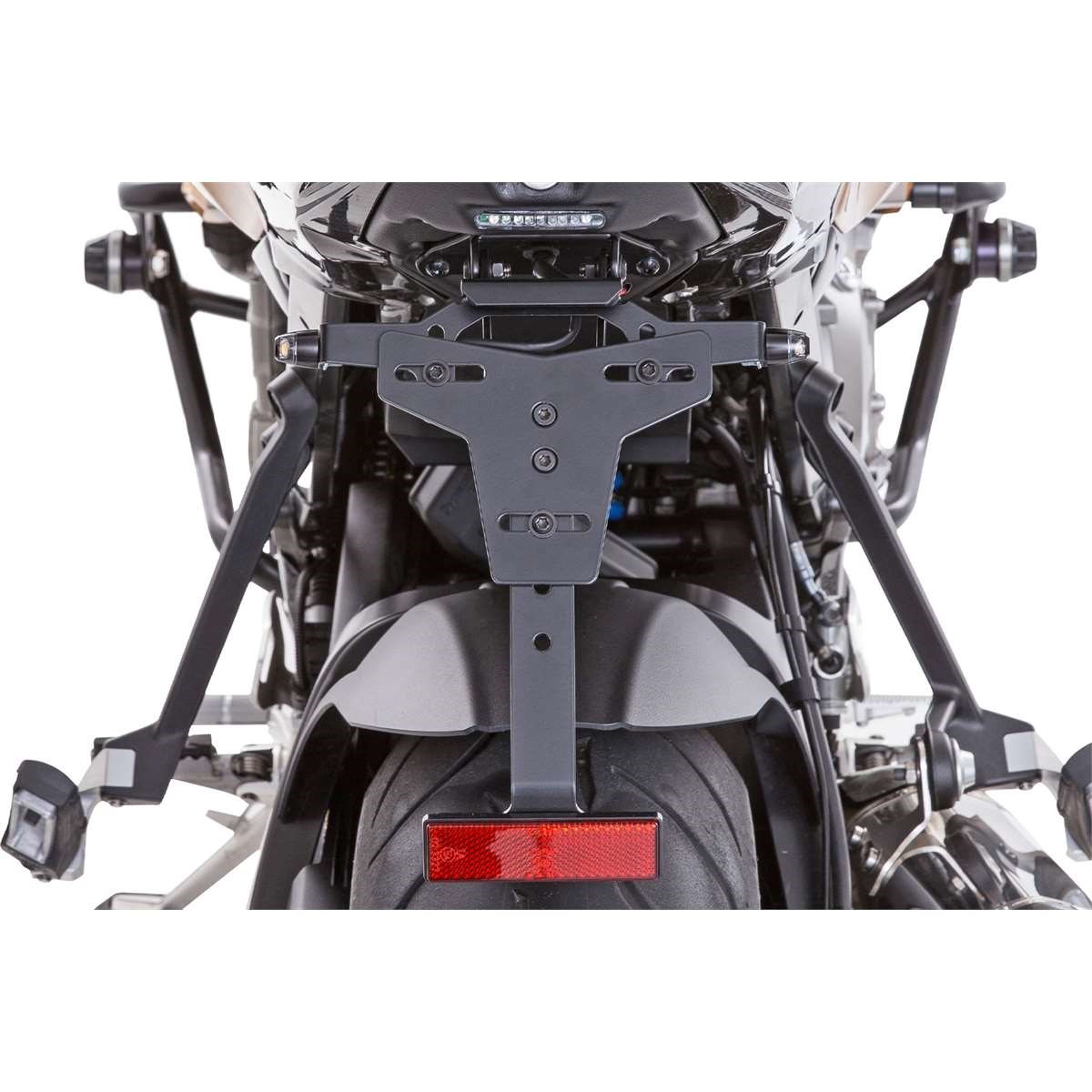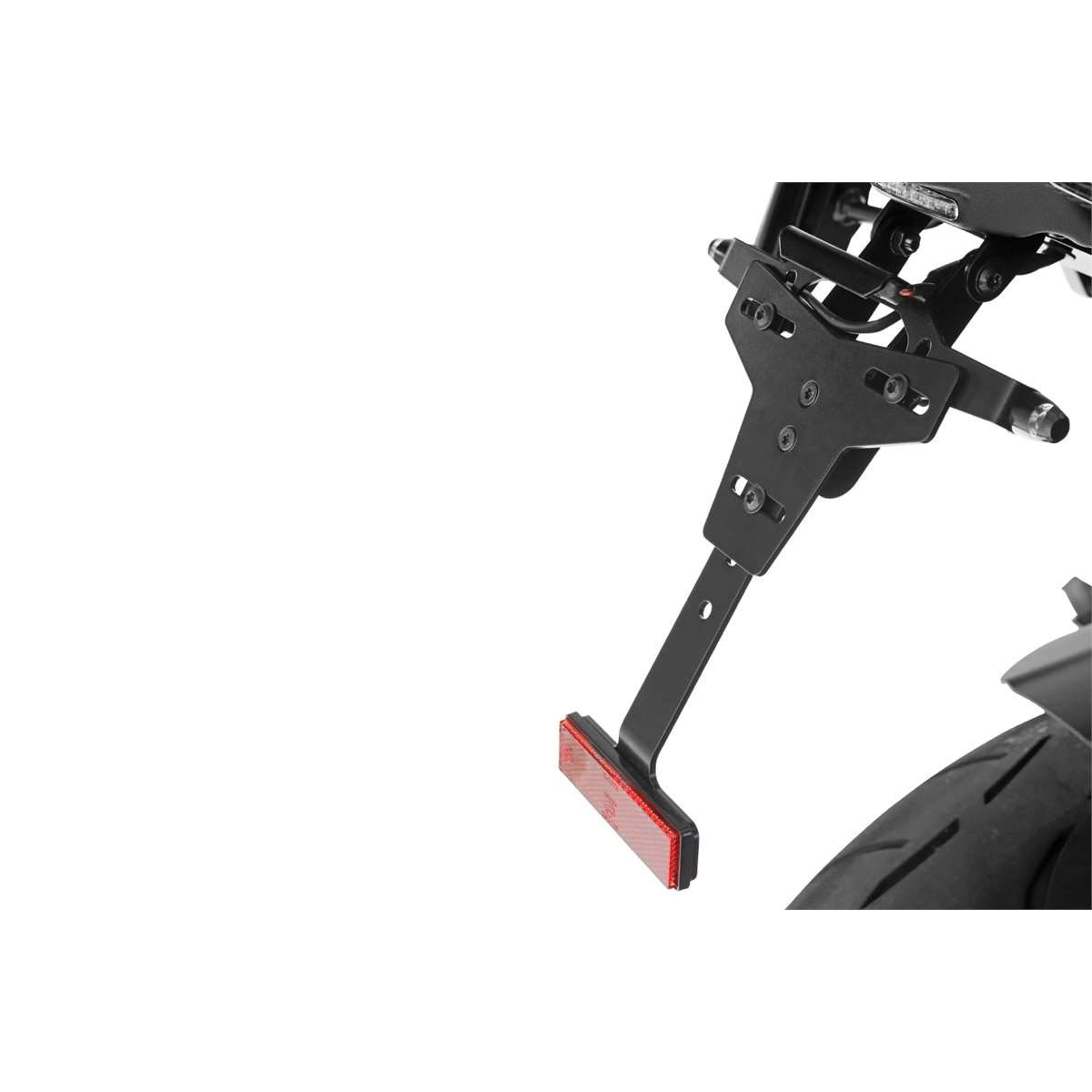 Mit diesem Umbau lässt sich der unschön ausladende Kennzeichenhalter der XR inklusive der Blinker- und Rücklichteinheit deutlich näher an das Heck heranholen. Die seitliche Linie der 1000er wirkt dadurch stimmiger und kraftvoller. Ein Kennzeichenhalter inkl. Kennzeichen-Beleuchtung gehört zum Lieferumfang. Integriert in den Umbau ist eine Öffnung zur Aufnahme des Original-Sitzbankschlosses.