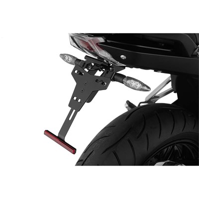 Der Umbausatz macht die optisch dominante -viele bezeichnen sie gar als klobig-, lange Radabdeckung überflüssig und ersetzt das Rücklicht gegen eine reduzierte, stimmig integrierte Variante. Die passgenaue, schalenförmige Heckverkleidung unseres Kits verschließt die unterseitige Öffnung, die bei der Demontage der originalen Radabdeckung und des originalen Rücklichts entsteht. Sie ist gleichzeitig die Basis zur Aufnahme unseres sportlichen, aufs Nötigste reduzierten Kennzeichenträgers, dessen Ausleger aus gefrästem Aluminium besteht, und des kleinen Rücklichts. Der Neigungswinkel des Kennzeichens ist natürlich einstellbar und die Aufnahmen für die originalen Blinker sind vorbereitet, sodass diese einfach weiterverwendet werden können. Der Kennzeichenhalter selbst besteht aus Edelstahl. Die Adapterkabel für den unkomplizierten, komfortablen elektrischen Anschluss der Blinker und der mitgelieferten LED-Kennzeichenbeleuchtung (mit E-Prüfzeichen) sind vorbereitet. Sie lassen sich so in den dafür vorgesehenen Kabelkanälen verbergen. Zum Lieferumfang gehört nicht zuletzt der vorgeschriebene (demontierbare) Reflektor.