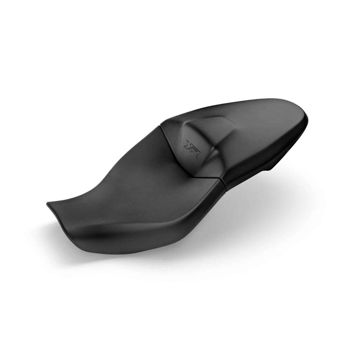 Die hohe Sitzbank in schwarz ist speziell geeignet für grössere Fahrer. Der Kniewinkel wird grösser, dies ergibt eine entspanntere Sitzposition, was vor allem auf längeren Touren deutlich spürbar ist.