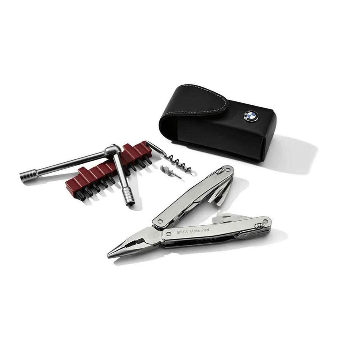 Durch sein kompaktes Pocket-Format findet das praktische Multitool in jedem Motorrad Platz und ersetzt dennoch 40 vollwertige Werkzeuge, mit denen sich fast alle einfachen Wartungs- und Pflegearbeiten sowie Ergonomie-Anpassungen am Motorrad durchführen lassen. Durch seine hochwertige Leichtbauweise aus rostfreiem Stahl ist das Multifunktions-Werkzeug leicht, handlich und besonders bedienungsfreundlich. Ein unentbehrlicher Begleiter, der in keinem Motorrad fehlen sollte – und im mitgelieferten schwarzen Leder-Etui auch am Gürtel getragen werden kann.