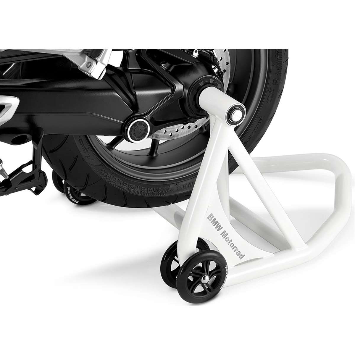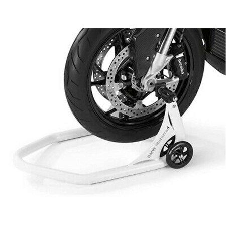 - 4 große Rollen mit BMW Motorrad Schriftzug zum Verschieben des Motorrads