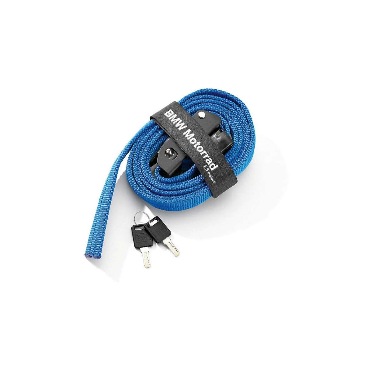 Clever und vielseitig: Mit dem abschließbaren Spanngurt lassen sich die Gepäckrolle Atacama, aber auch andere Gepäckstücke oder Helme an der Maschine sichern. Der 1,8 m lange Gurt besteht aus einem geflochtenen Stahlband, das mit einem blauen Gurtband ummantelt ist. Dank der eingewebten Stahlseele und des verriegelbaren, selbstsichernden Verschlusses bietet der Gurt optimalen Schutz vor Diebstahl. Selbstverständlich kann der Spanngurt auch anderweitig eingesetzt werden.