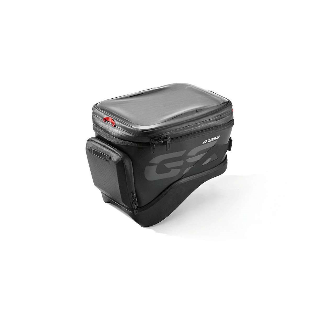 Stauraum für jeden Tag: Der Tankrucksack aus strapazierfähigem, PVC-beschichtetem Polyestergewebe bietet genug Platz im Alltag, denn je nach Bedarf lässt sich sein Hauptfach von 11 auf 15 Liter erweitern. Das wasserabweisende Kartenfach im Deckel und die Außentasche bieten zusätzlich Platz nicht nur für Kleinteile. Das Hauptfach ist dank Innensack mit Rollverschluss wasserdicht. Der dreiseitig umlaufende Zweiwege-Reißverschluss erleichtert den Zugang. Zu den cleveren Details zählen außerdem die spritzwassergeschützte Kabeldurchführung für ein USB-Ladekabel und die Befestigungsschlaufen am Deckel, an denen ein optionales wasserdichtes DIN-A4-Kartenfach fixiert werden kann. Besonders praktisch ist außerdem die wasserabweisende Reißverschluss-Außentasche mit Flaschenhalterfunktion, in der eine 0,5 Liter große PET-Flasche Platz findet und schnell erreichbar ist. Die durchdachte Riemenbefestigung und die exakt an den Tank angepasste Bodenplatte aus EVA mit rutschhemmender PU-Beschichtung sorgen schließlich für sicheren Halt und eine äußerst praktische Handhabung. Beim Sightseeing oder Shopping erweisen sich der Tragegriff und der abnehmbare Schultergurt als praktische Features. Der GS Schriftzug an den Seiten rundet die attraktive Optik ab. Der Innenraum des Tankrucksacks kann mit einem optionalen Varioeinsatz flexibel unterteilt werden.
