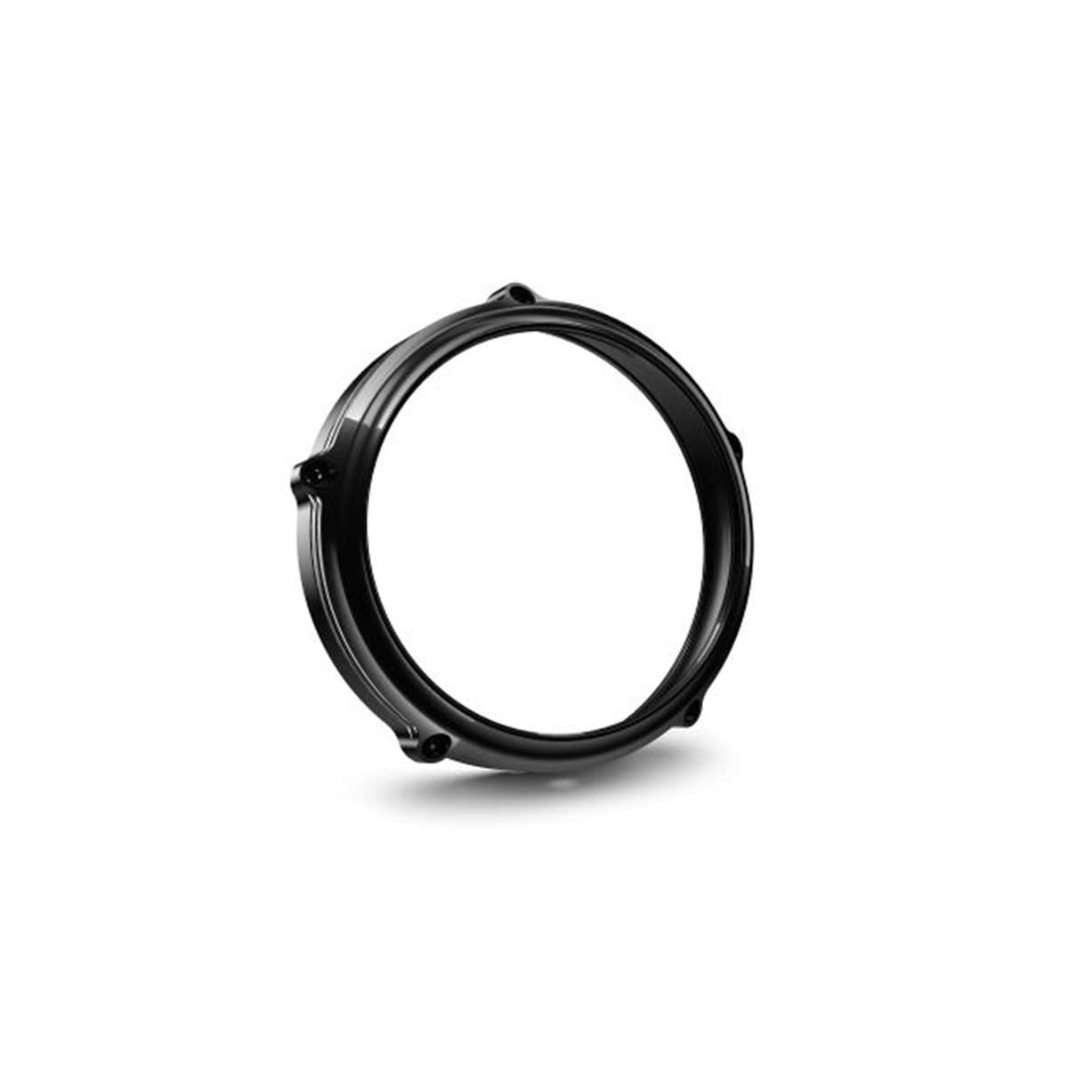 Die hochwertige Scheinwerferabdeckung Machined setzt mit ihrer Bicoloroptik in Schwarz und Aluminium Natur einen zusätzlichen Designakzent. Der gefräste Zierring aus eloxiertem Aluminium umschließt den Lampentopf und dient zugleich als Halterung für das Scheinwerferglas.