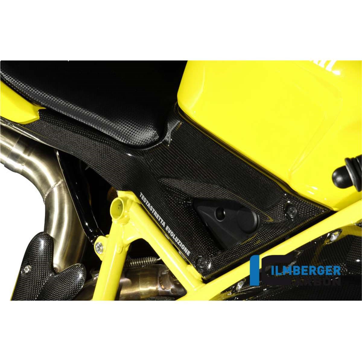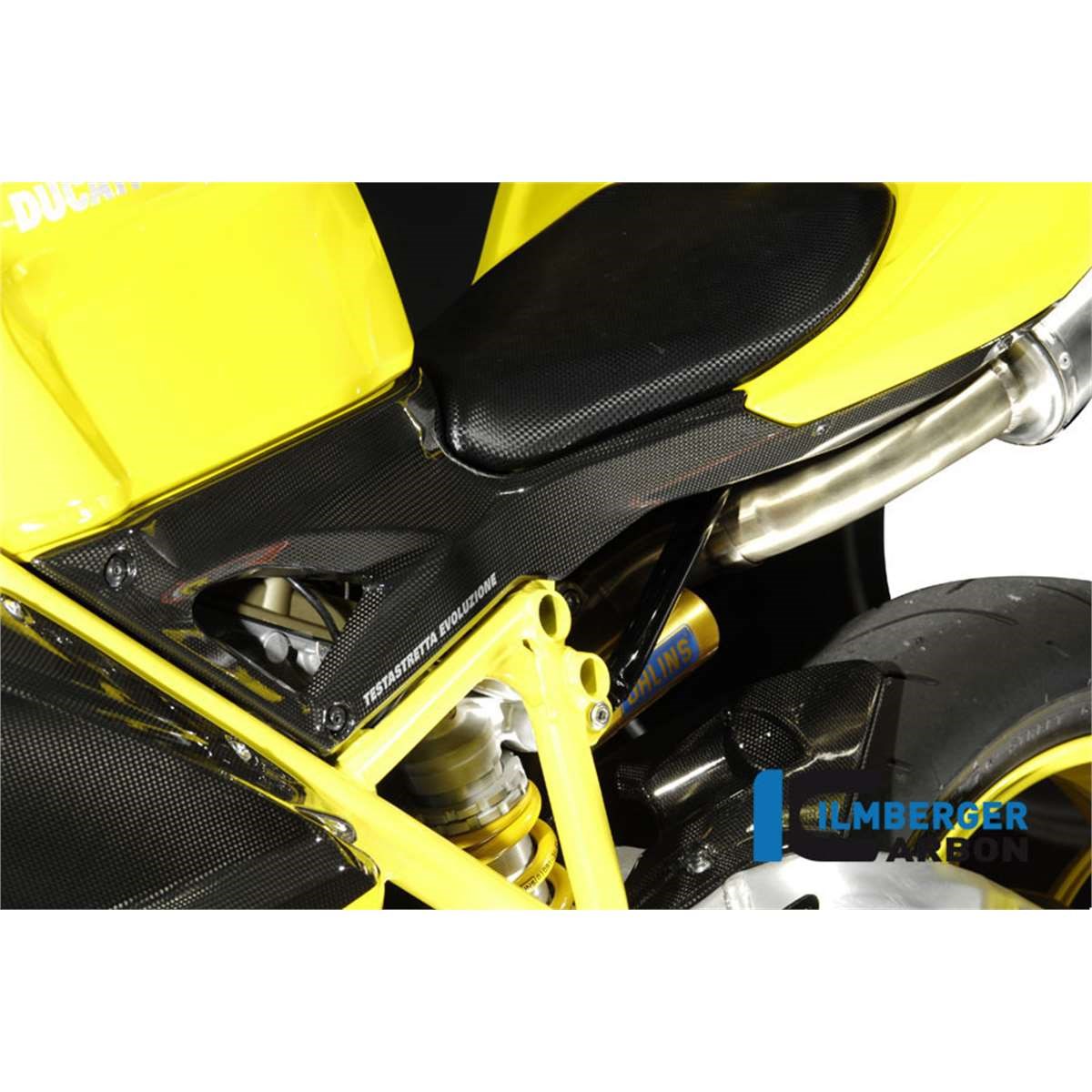 Die Airboxabdeckung in Carbon für die Ducati 848/1098/1198 ersetzt das originale Bauteil unter Verwendung der originalen Befestigungspunkte. Im Vordergrund stehen Gewichtsersparnis (in der Regel Einsparung von ca. 70% im Vergleich zum originalen Bauteil) und höhere Steifigkeit.  Das Carbonteil wurde nach den neuesten Richtlinien im Autoklaven komplett aus Prepreg (siehe FAQ) Material gefertigt und im nächsten Schritt, wie bei uns üblich, zum Schutz gegen Umwelteinflüße mit einer klaren Kunststoffbeschichtung überzogen.