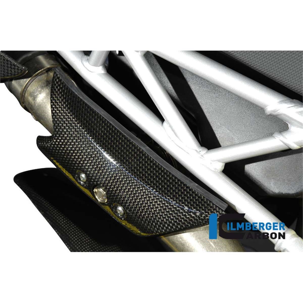 Der Auspuffhitzeschutz in Carbon für die Ducati Hypermotard ersetzt das originale Bauteil unter Verwendung der originalen Befestigungspunkte. Im Vordergrund stehen Gewichtsersparnis (in der Regel Einsparung von ca. 70% im Vergleich zum originalen Bauteil) und höhere Steifigkeit.  Das Carbonteil wurde nach den neuesten Richtlinien im Autoklaven komplett aus Prepreg (siehe FAQ) Material gefertigt und im nächsten Schritt, wie bei uns üblich, zum Schutz gegen Umwelteinflüße mit einer klaren Kunststoffbeschichtung überzogen.