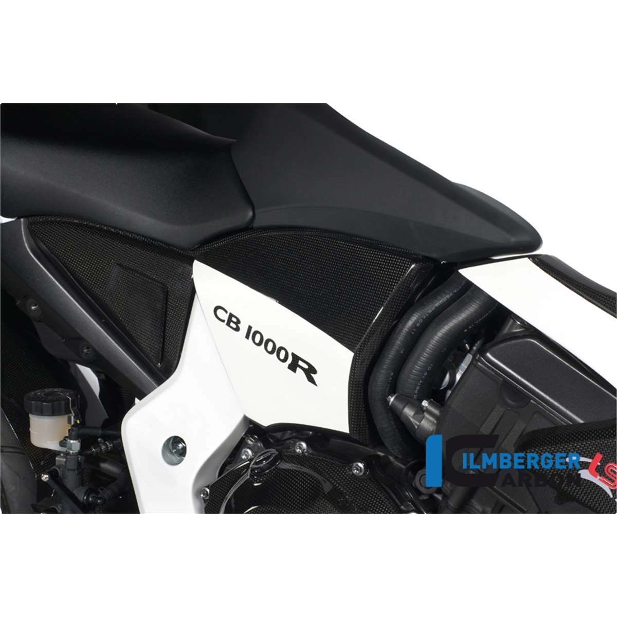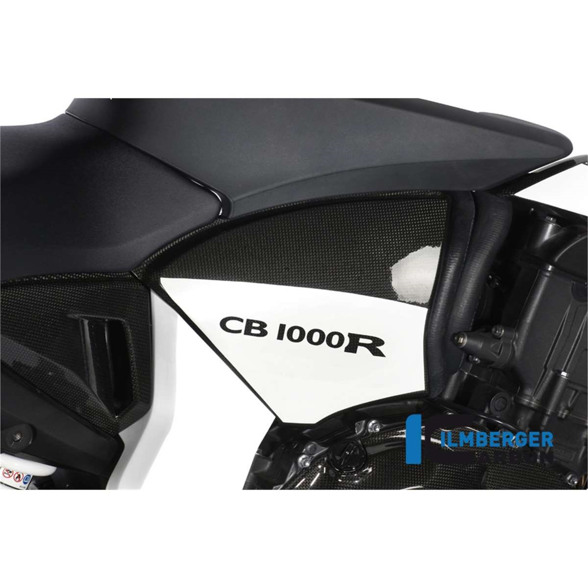 Die Airboxabdeckung in Carbon für die Honda CB 1000 R  ersetzt das originale Bauteil unter Verwendung der originalen Befestigungspunkte. Im Vordergrund stehen Gewichtsersparnis (in der Regel Einsparung von ca. 70% im Vergleich zum originalen Bauteil) und höhere Steifigkeit.  Das Carbonteil wurde nach den neuesten Richtlinien im Autoklaven komplett aus Prepreg (siehe FAQ) Material gefertigt und im nächsten Schritt, wie bei uns üblich, zum Schutz gegen Umwelteinflüße mit einer klaren Kunststoffbeschichtung überzogen.