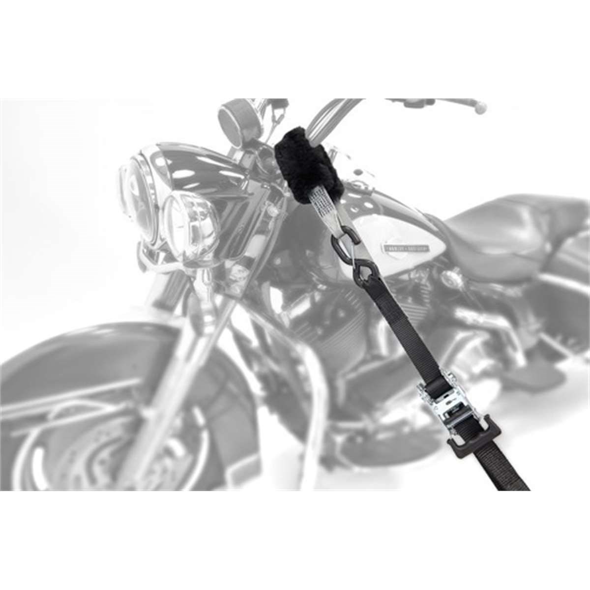 Der Ratschenspanngurt set bietet sicheren und zuverlässigen Halt beim Transport schwerer Motorräder. Dank der gummierten Haken und dem künstlichen Schafwollbezug werden Beschädigungen am Motorrad vermieden und das Bike kann risikolos transportiert werden. Mit Belastbarkeit von 900 daN und einer Breite von 35 mm ist der Motorradspanngurt äußerst stabil und bietet besonders für schwere Bikes sicheren Halt beim Transport. Mit nur wenigen Handgriffen kann der 2,5 kg schwere Spanngurt am Bike befestigt werden und mit Hilfe der galvanisierten Ratschen sicher und straff angezogen werden. Wir liefern den Ratschenspanngurt set für den Transport von schweren Motorrädern in einer praktischen Aufbewahrungstasche, so ist der Gurt immer griffbereit. Dank der belastbaren und praktischen Verschlussclipse ist die Sicherung des Motorrades kinderleicht und bequem zu bewerkstelligen.