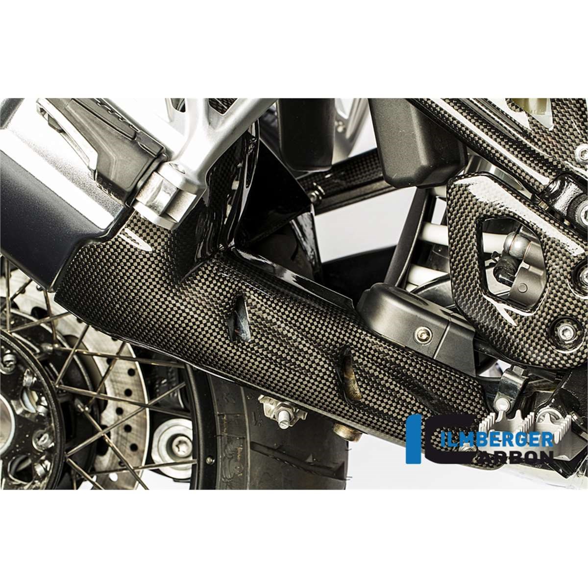 Der untere Auspuffhitzeschutz in Carbon für die BMW R 1200 GS (LC) ersetzt das originale Bauteil unter Verwendung der originalen Befestigungspunkte. Im Vordergrund stehen Gewichtsersparnis (in der Regel Einsparung von ca. 70% im Vergleich zum originalen Bauteil) und höhere Steifigkeit.