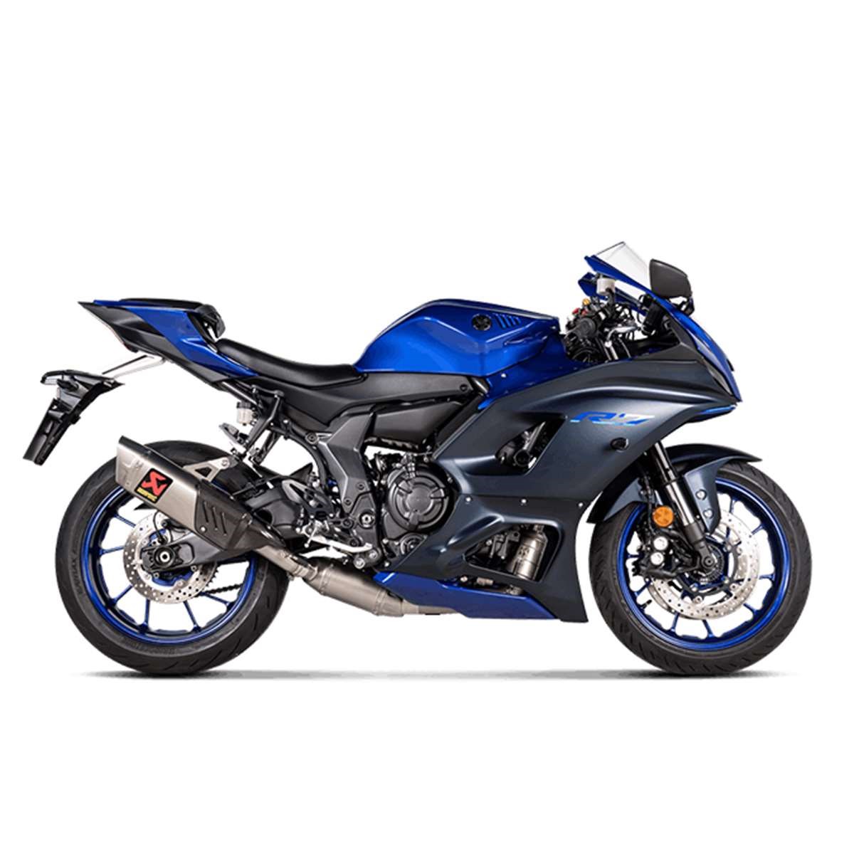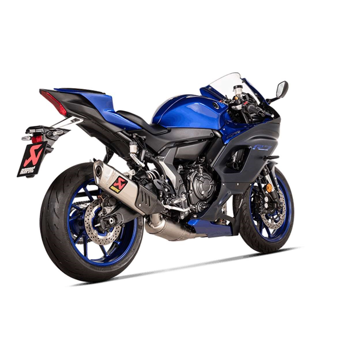 Es handelt sich um eine Komplett-Abgasanlage mit EC/ECE-Typgenehmigung, die aus einer Außenhülle und einer Endkappe für den Schalldämpfer aus hochwertigem, leichtem Titan sowie einer Link Pipe und einem Krümmer aus Edelstahl besteht und 0,7 kg leichter ist als dir serienmäßige Abgasanlage. Ein Katalysator ist im Lieferumfang enthalten, womit die aktuellen Euro-5-Zulassungskriterien erfüllt sind. Auf dem Akrapovic Prüfstand wurden im Vergleich zu einer serienmäßigen Abgasanlage eine Leistungssteigerung von 1,5 kW (2,0 PS) bei 9.200 U/min und ein Drehmomentzuwachs von 1,1 Nm bei 5.000 U/min festgestellt. Der tiefe, lebendige Klang unterstreicht die sportlichen Qualitäten des Motorrads. Der Vorschalldämpfer ist unterhalb des Motorrads platziert und wird von der Verkleidung verdeckt, der Schalldämpfer tritt auf der rechten Seite der Maschine aus. Die Anlage ist mit einem handgefertigten Karbon-Hitzeschild ausgestattet. Für die R7 ohne Soziusfußrasten ist optional eine schwarz beschichtete Aluminium-Schalldämpferhalterung erhältlich.Der Katalysator ist bei der Abgasanlage inbegriffen.