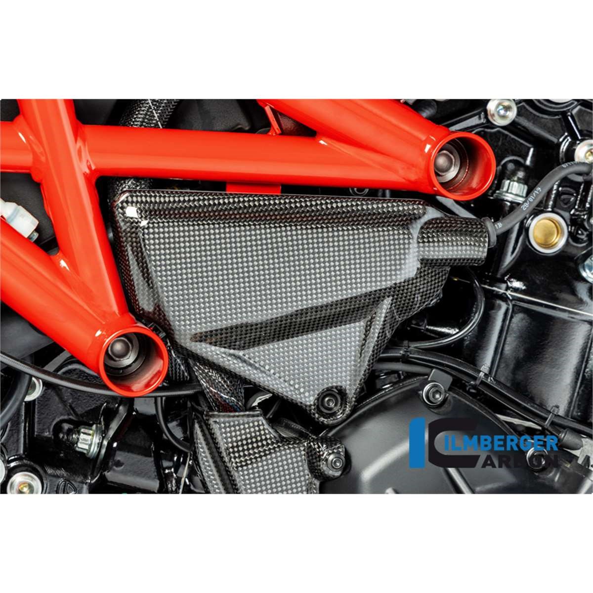 Das Hightech-Carbonteil wiegt nur etwa 60g, ist damit deutlich leichter als sein serienmäßige Plastik-Pendant! Aber wie immer steht nicht nur Gewichtsersparnis im Vordergrund, sondern auch die erhöhte Steifigkeit des Materials und die besonders sportliche Optik der Carbonfasern. In der glänzenden Ausführung steht das Ilmberger Carbonteil im Kontrast zu den, von Ducati original angebotenen, matten Carbonteilen.