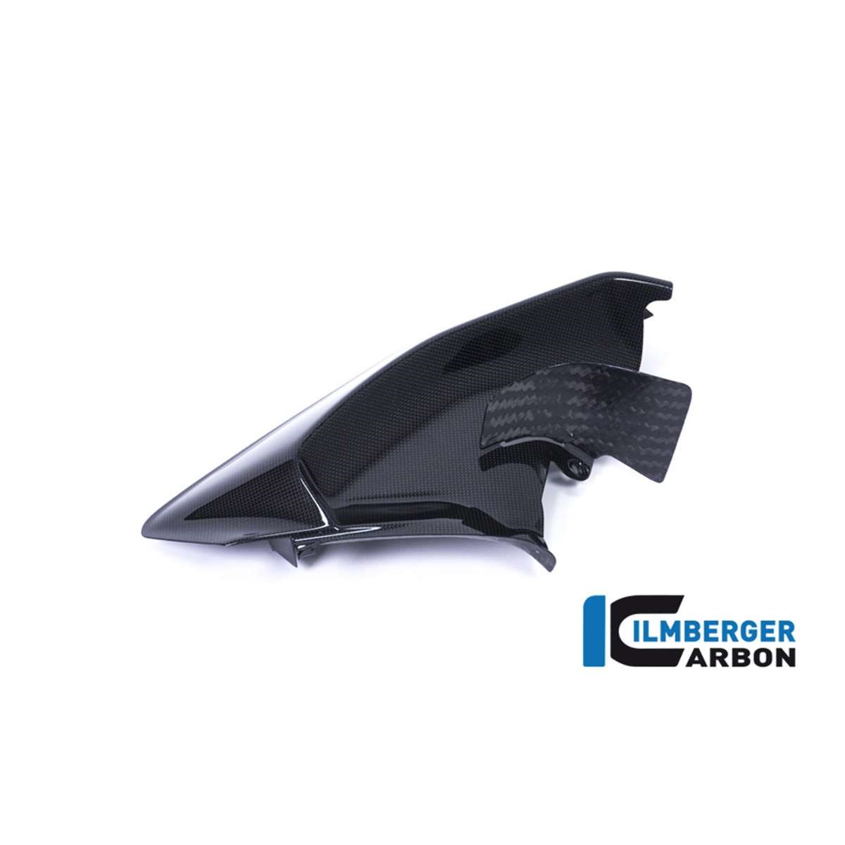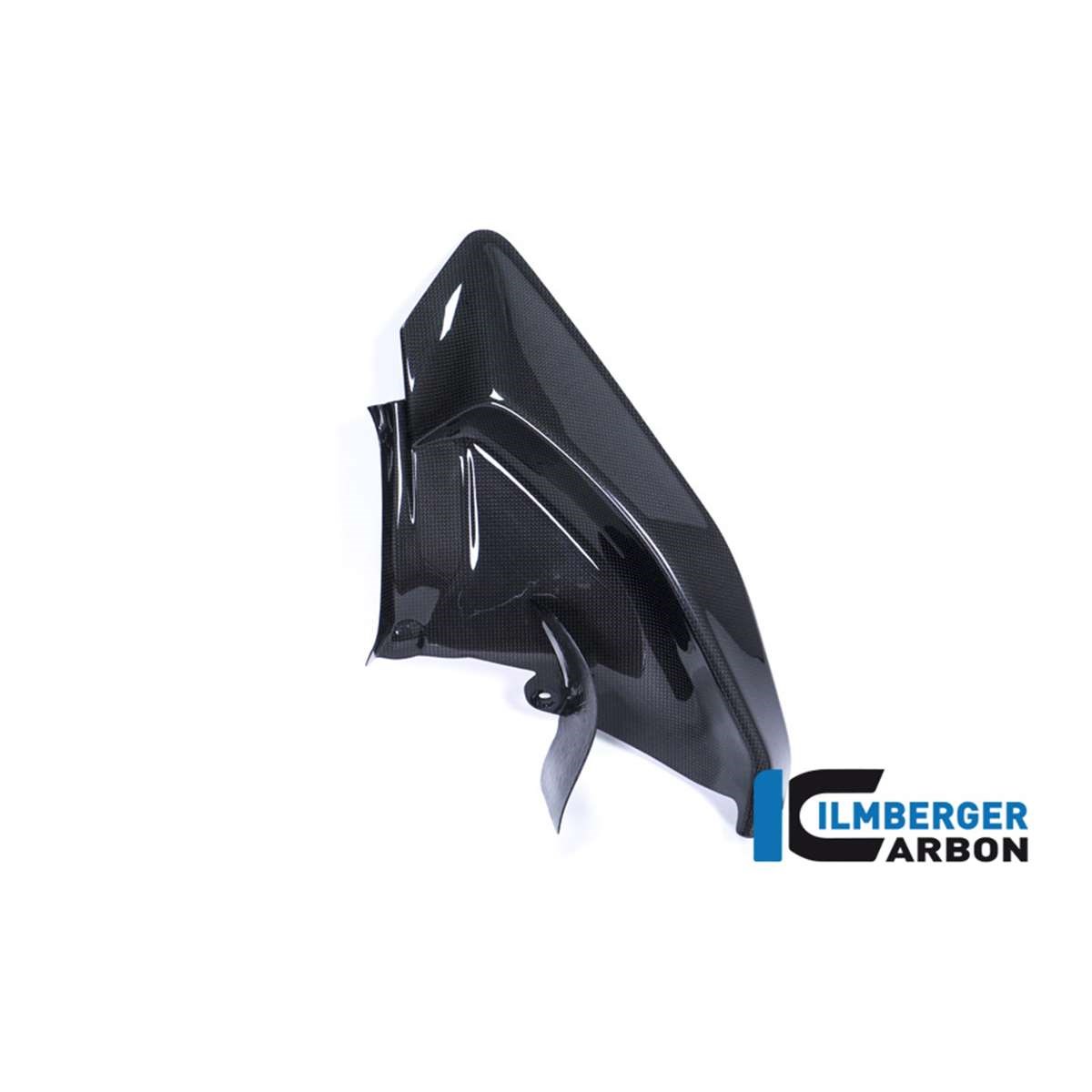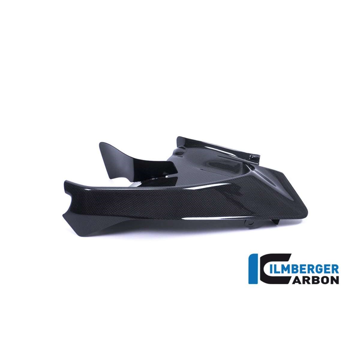 Die Abdeckung unter dem Rahmen (rechts) ersetzt das dortige Originalteil. Die Ilmberger Carbon Abdeckung wird an den serienmäßigen Punkten verschraubt. Das Carbonteil wird mit glänzender Oberfläche ausgeliefert und steht damit im Kontrast zu den, von Ducati Performance angebotenen, matten Carbonteilen.