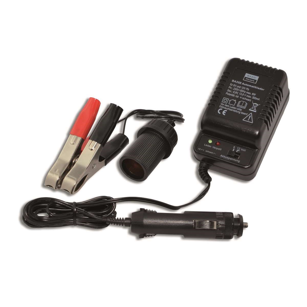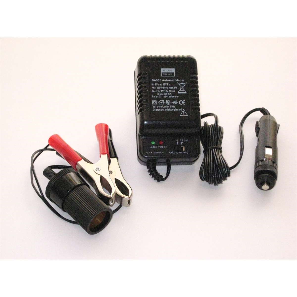 Dieser Lader ist für 6 und 12 Volt-Batterien umschaltbar und als Automatiklader für den Daueranschluss an der Fahrzeugbatterie entwickelt. Er lädt herkömmliche Blei- aber auch moderne Gel- und Flies-Batterien mit max. 300 mA bis zum Erreichen der Zielspannung von 13,8 Volt.