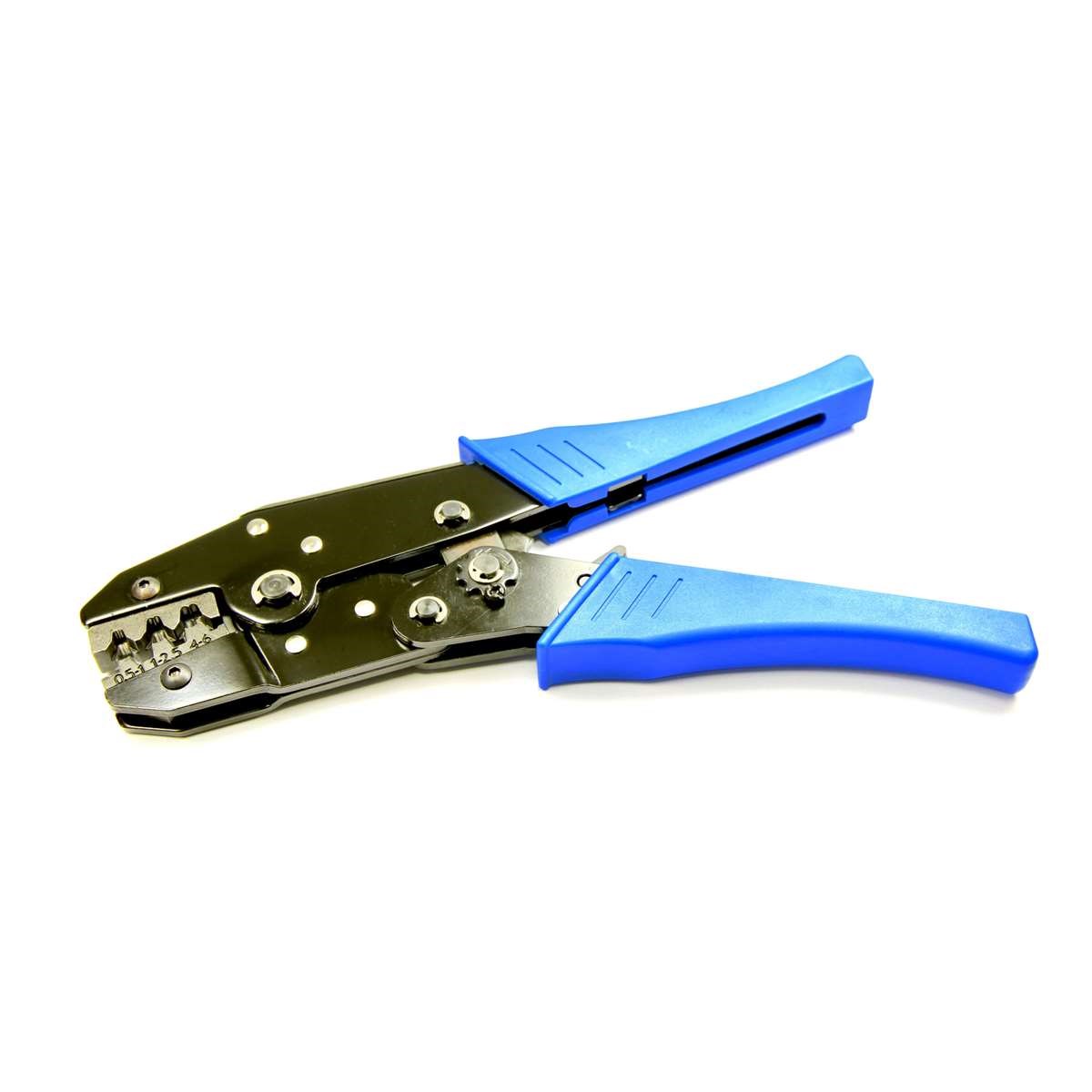 Mit dieser Zange können die Steckverbinder sauber verpresst werden, für einen dauerhaften und sicheren Kontakt.