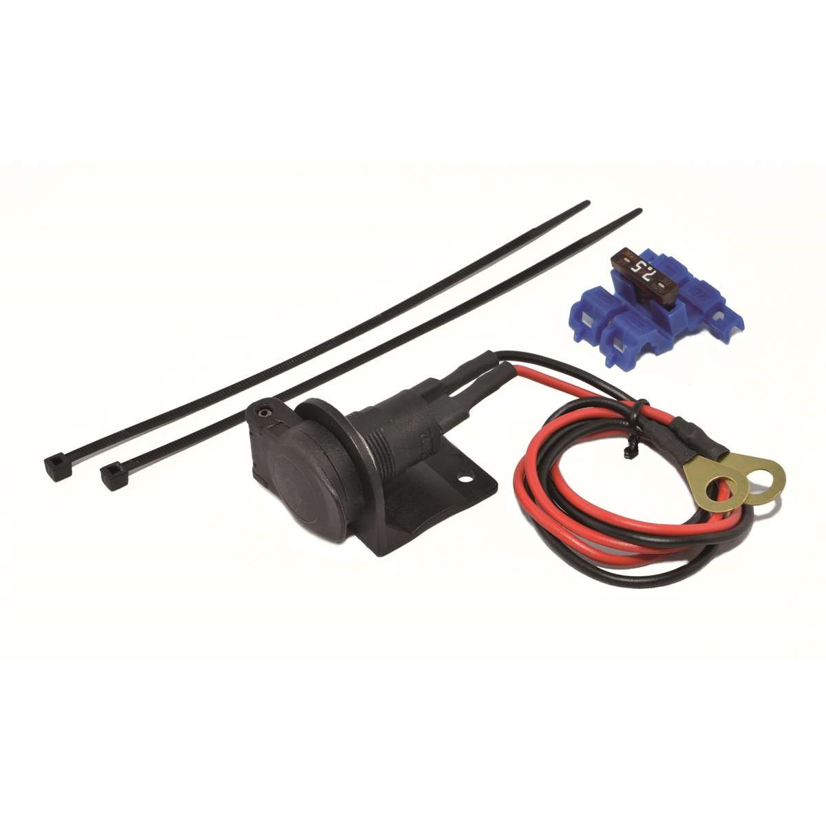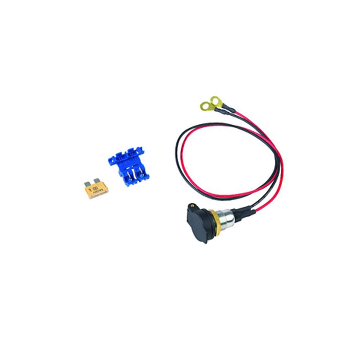Die Steckdose im Isolierkunststoff ist mit hochwertigen Kabeln und abziehbaren Kabelkontakten ausgestattet. Im Lieferumfang befindet sich ein flexibel einzubauender Sicherungshalter mit Sicherung und ein Montagewinkel für die Befestigung am Rohrgestänge.