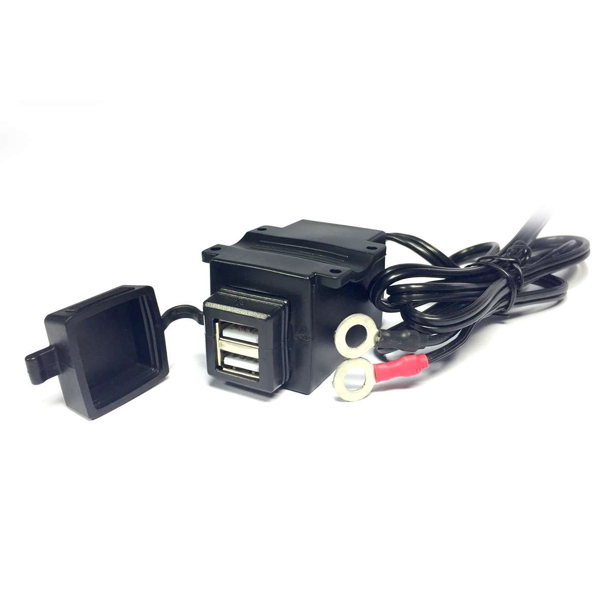 Das Gehäuse ist IP54 wettergeschützt, die 1,2 m Leitung mit Batteriekabelschuhen erlaubt den flexiblen Einbau am Lenker- oder Rohrgestänge. Durch 4 Befestigungslöcher kann die Steckdose aber nicht nur mit Kabelbindern montiert, sondern auch gut an Flächen oder z.B. unter ein Armaturenbrett geschraubt werden.