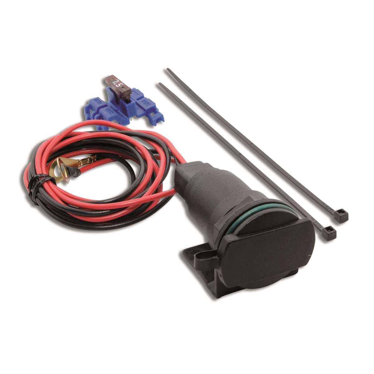 Die Zigarettenanzünder-Bordsteckdose lässt sich mit dem integrierten Montagewinkel einfach mit Kabelbindern am Gestänge oder Lenker montieren. Die Einbaumontage mit Verkleidungsloch (27 mm) ist auch möglich.