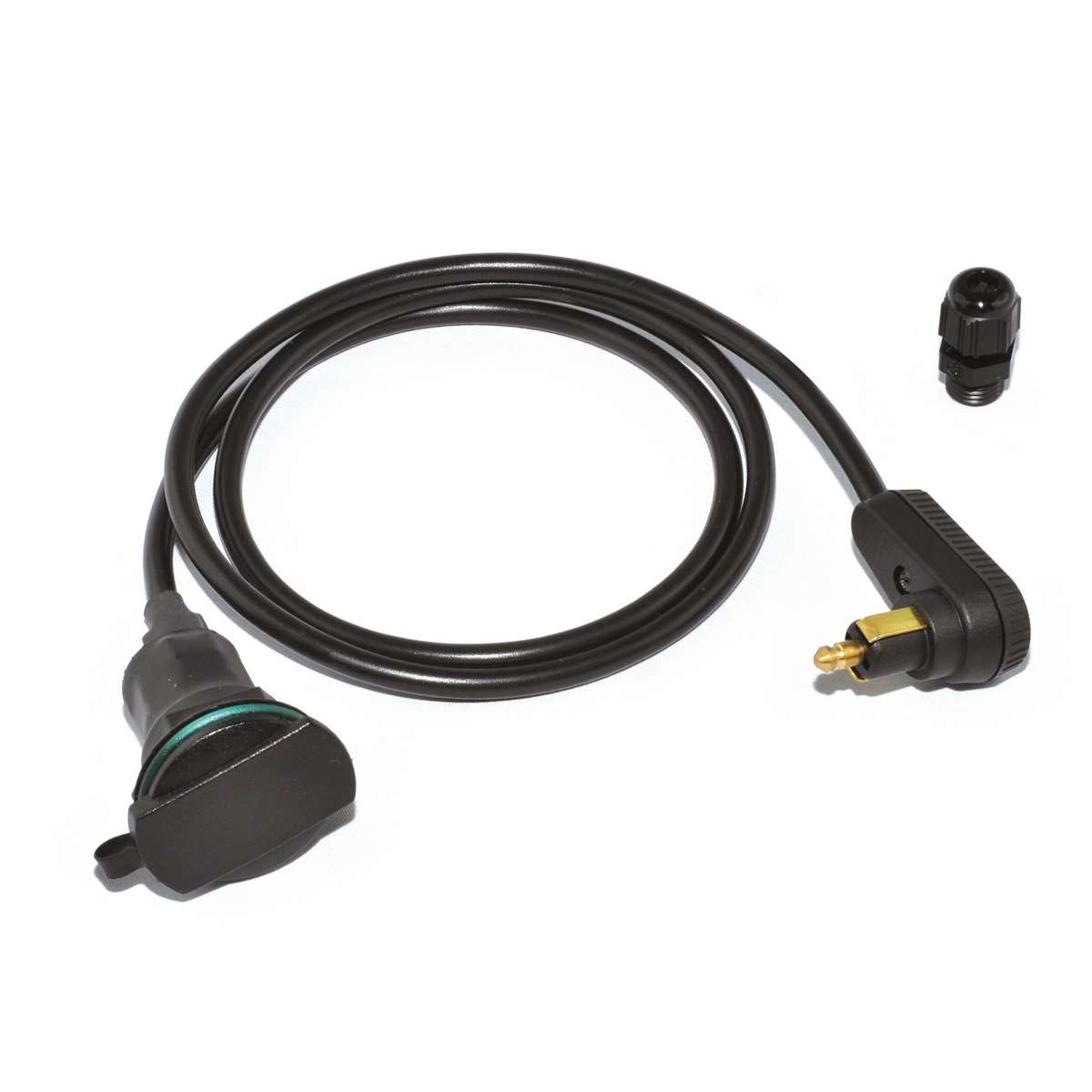 Ausgestattet ist das Kabel mit dem DIN-Winkelstecker zum Einstecken in alle DIN-Steckdosen, wie sie auch teilweise serienmäßig in BMW oder Triumphmodellen verbaut sind.