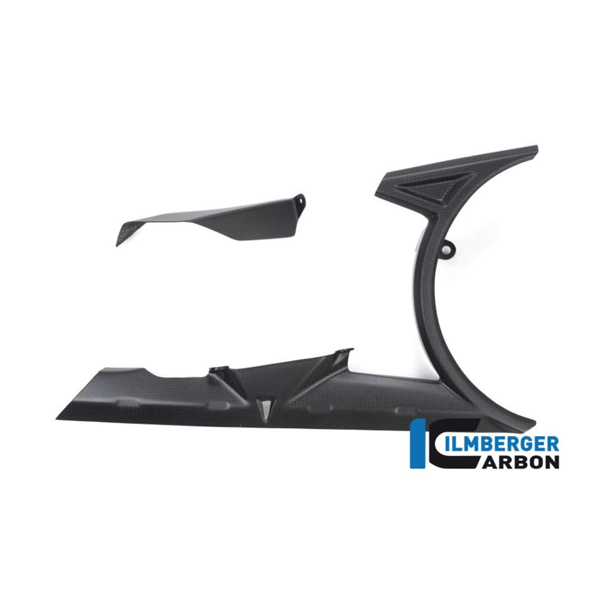 Die Beltabdeckung (2-teilig) in Carbon in matter Ausführung für die Ducati XDiavel (ab Baujahr 2016) wird an vorhandenen Haltepunkten am Fahrzeug aufgeschraubt.