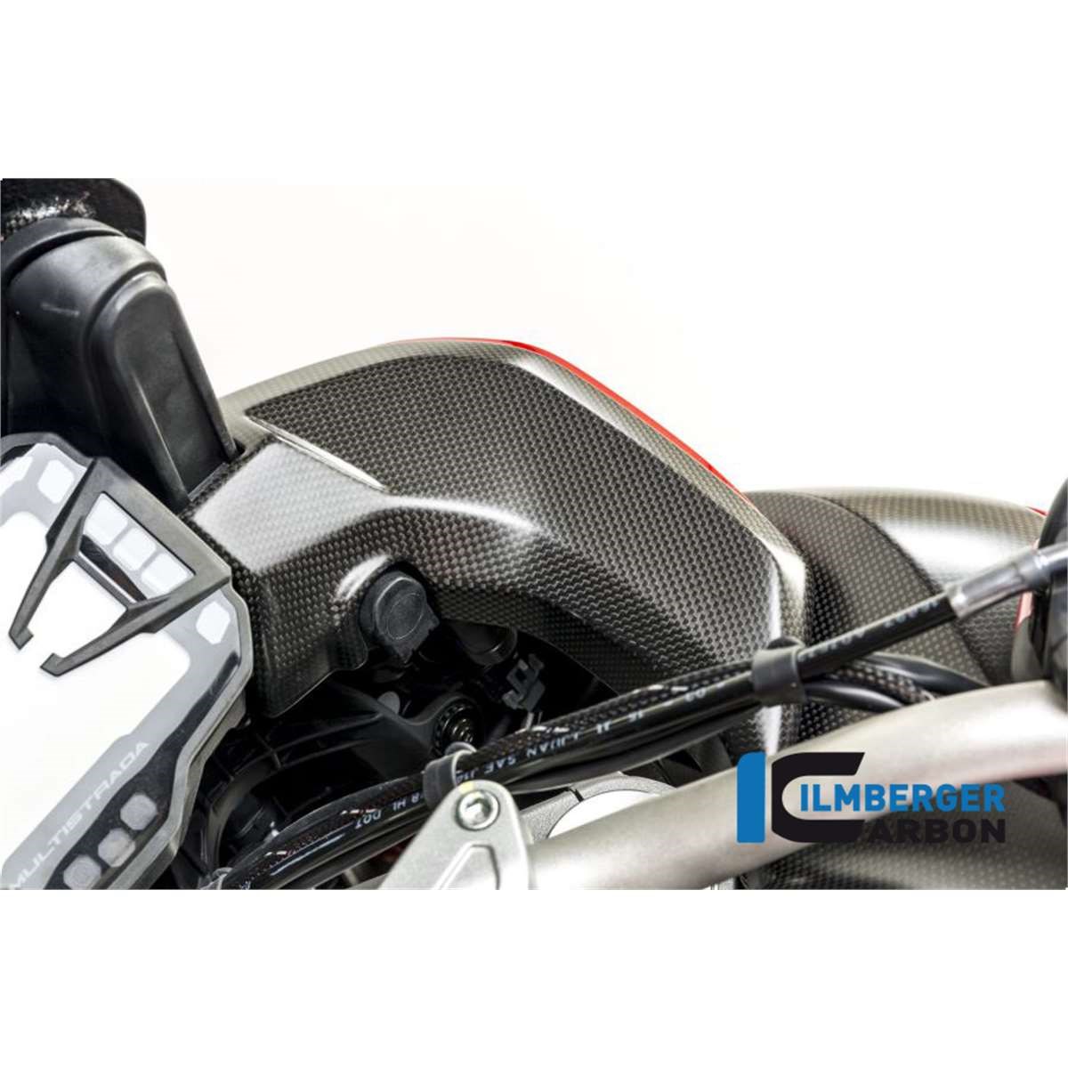 Die  bereits bei vielen Fahrzeugen ab Werk verbauten, matten Ducati Performance Carbonteile, passen optisch exakt zu den matten Ilmberger Carbonteilen. Natürlich kann die Abdeckung auch in glänzendem Carbonfinish bestellt werden und steht dann im Kontrast zu den, von Ducati-Performance angebotenen, Original-Zubehör Carbonteilen.