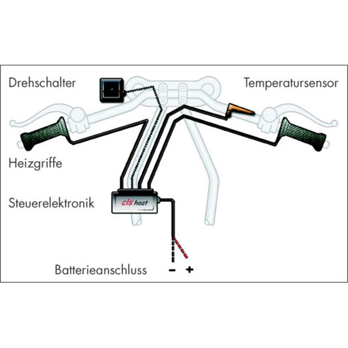 Das CLS Heat ist eine moderne, mikroprozessorgesteuerte Heizgriffsteuerung für Motorräder oder Quads. Das Besondere an dem System, dass es grundlegend von allen anderen Heizgriffsystemen unterscheidet, ist die einzigartige Steuerung. Das System aktiviert sich selbst, nachdem der Motor 20 Sek. gelaufen ist.