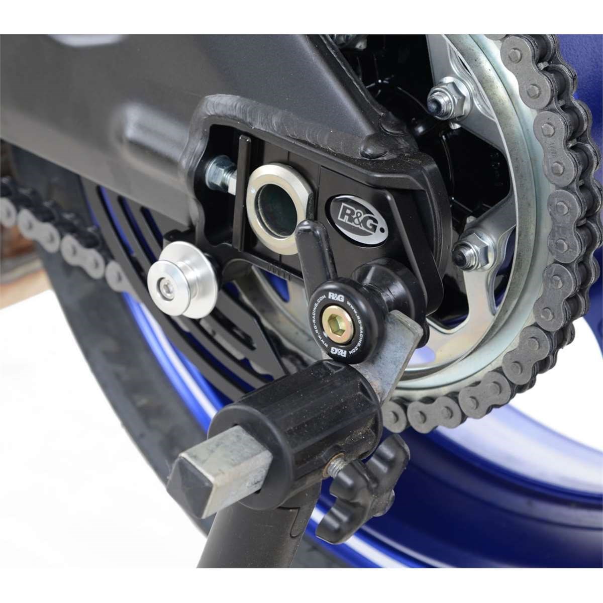 Der Vorteil dieser Konstruktion ist folgender, bei einem Sturz oder Umfaller wirken die auftretenden Kräfte, über die Bobbins, nicht direkt auf die originalen Aufnahmen an der Schwinge, sondern auf die verlängerten Frästeile der Kettenspanner.