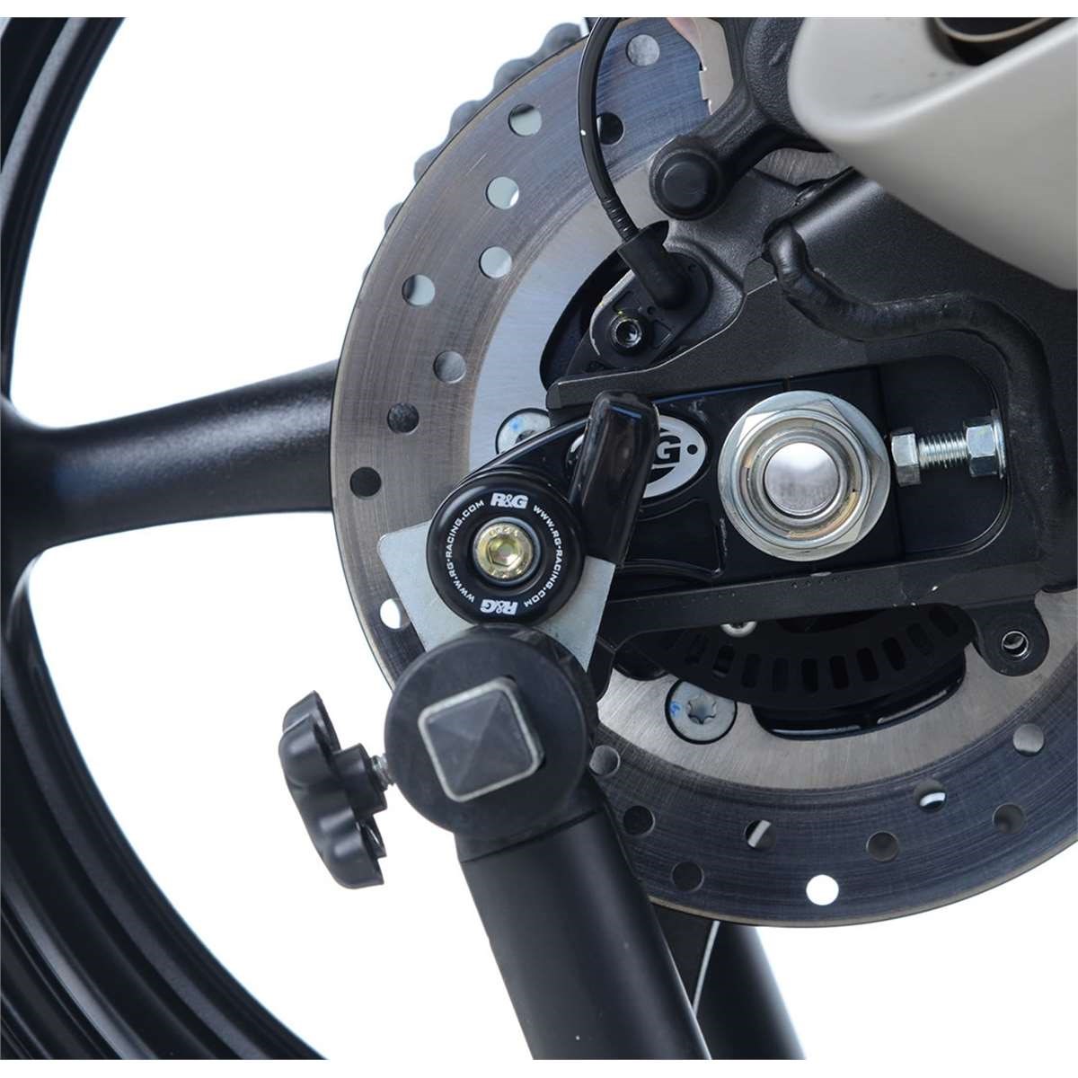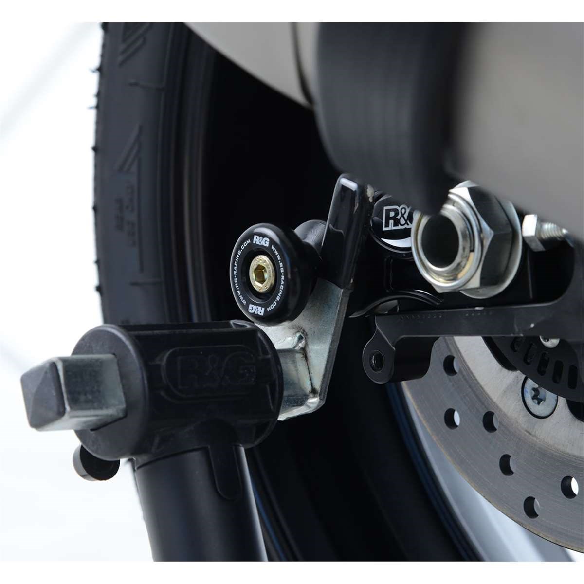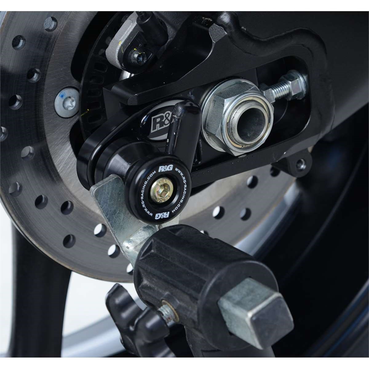 Der Vorteil dieser Konstruktion ist folgender, bei einem Sturz oder Umfaller wirken die auftretenden Kräfte, über die Bobbins, nicht direkt auf die originalen Aufnahmen an der Schwinge, sondern auf die verlängerten Frästeile der Kettenspanner.