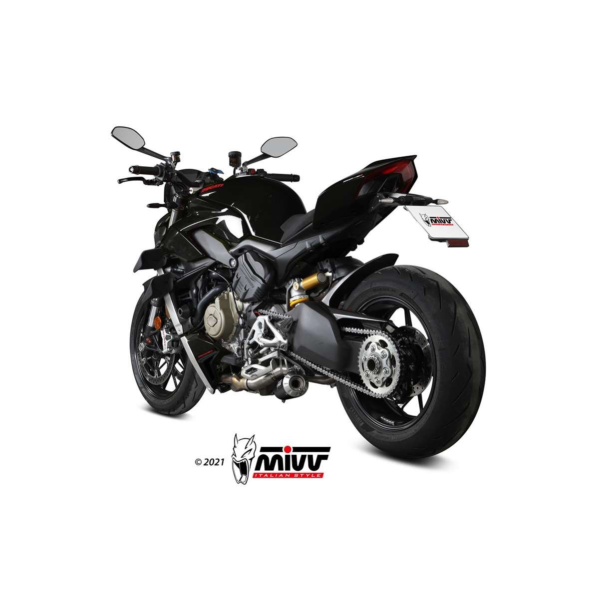 Die Auspuffanlagen von MIVV wurden für den Einsatz auf der Strasse entwickelt, für einige Modelle sind auch Komplettanlagen für den Racing-Einsatz verfügbar. Mit den zahlreichen Varianten kannst Du dein Bike individualisieren und gibst ihm eine persönliche Note.
