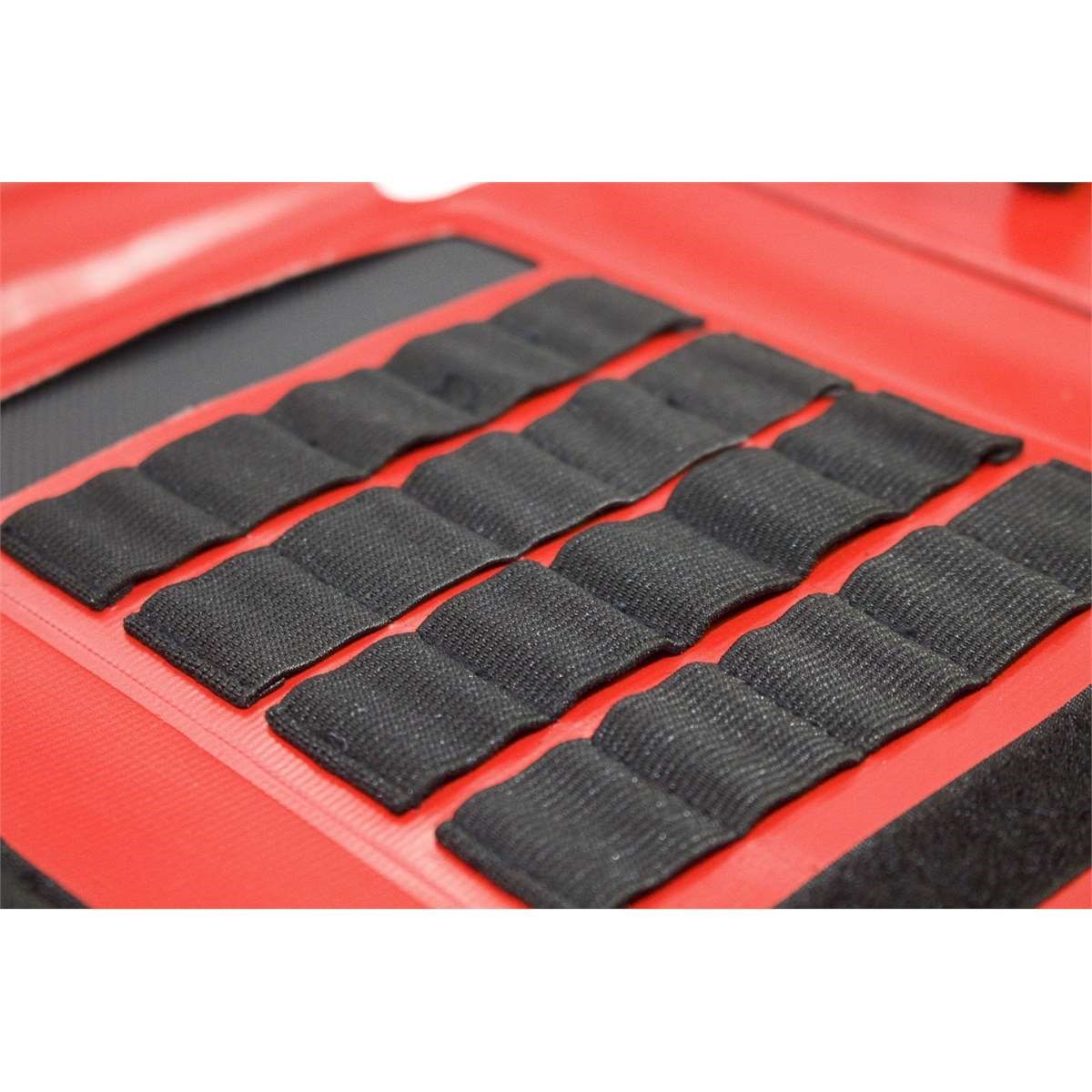 Wir kennen all diese Situationen: Wir legen diese eine Schraube sorgfälltig auf den Boden und eine Sekunde später ist sie irgendwo im Schotter verloren. Aus diesem Grund entfaltet sich unser Tool Pack zu einer grosszügigen und vor allem roten Ablagefläche. Alle demontierten Teile lassen sich so übersichtlich ablegen und dank dem hohen Kontrast bleiben sie auch zu später Stunde gut sichtbar. Ein Teil der Ablagefläche ist zusätzlich magnetisch.