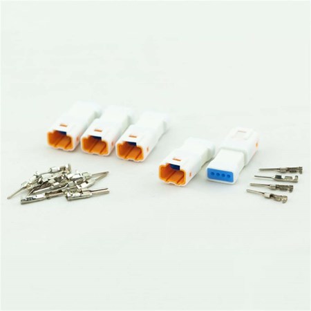 Der 4 Pin Mini-Stecker (männlich) ist Spritzwasser geschützt. Es sind 5 einzelne Stecker inkl. 20 einzelne Pins in einem Set, um eine sichere Steckverbindung herzustellen.