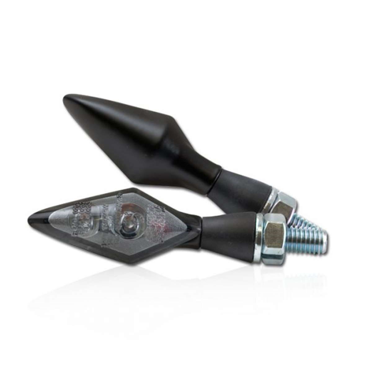 - schwarz- Paar- getönt- Aluminium- Gewinde: M8- Doppel Power LED Blinker- Maße: L 64 x B 22 x H 21 mm- E-geprüft