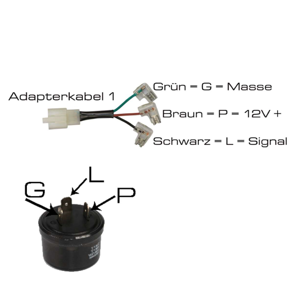 Inkl. 2 Adapterkabel für diverse Anschlüße. Selbstregelnd für alle Arten von Blinkern (LED/Birne) auch gemischte Konfigurationen und Warnblinkanlagen.
