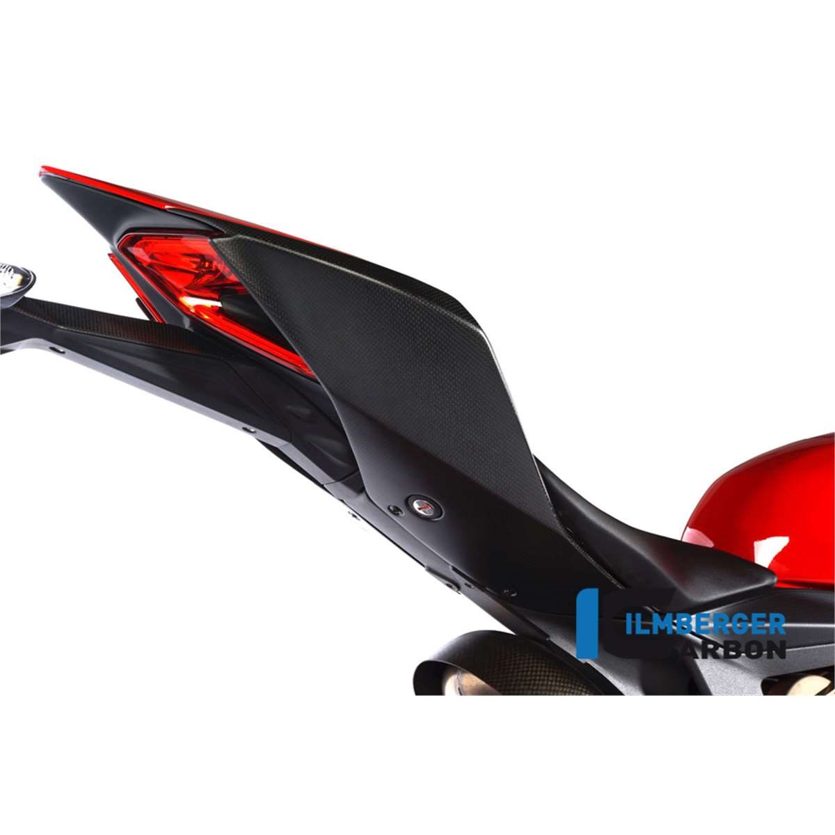 Die Heckverkleidung in Carbon für die Ducati 1199 Panigale ersetzt das originale Bauteil unter Verwendung der originalen Befestigungspunkte. Im Vordergrund stehen Gewichtsersparnis (in der Regel Einsparung von ca. 70% im Vergleich zum originalen Bauteil) und höhere Steifigkeit.  Das Carbonteil wurde nach den neuesten Richtlinien im Autoklaven komplett aus Prepreg (siehe FAQ) Material gefertigt und im nächsten Schritt, wie bei uns üblich, zum Schutz gegen Umwelteinflüße mit einer klaren Kunststoffbeschichtung überzogen.