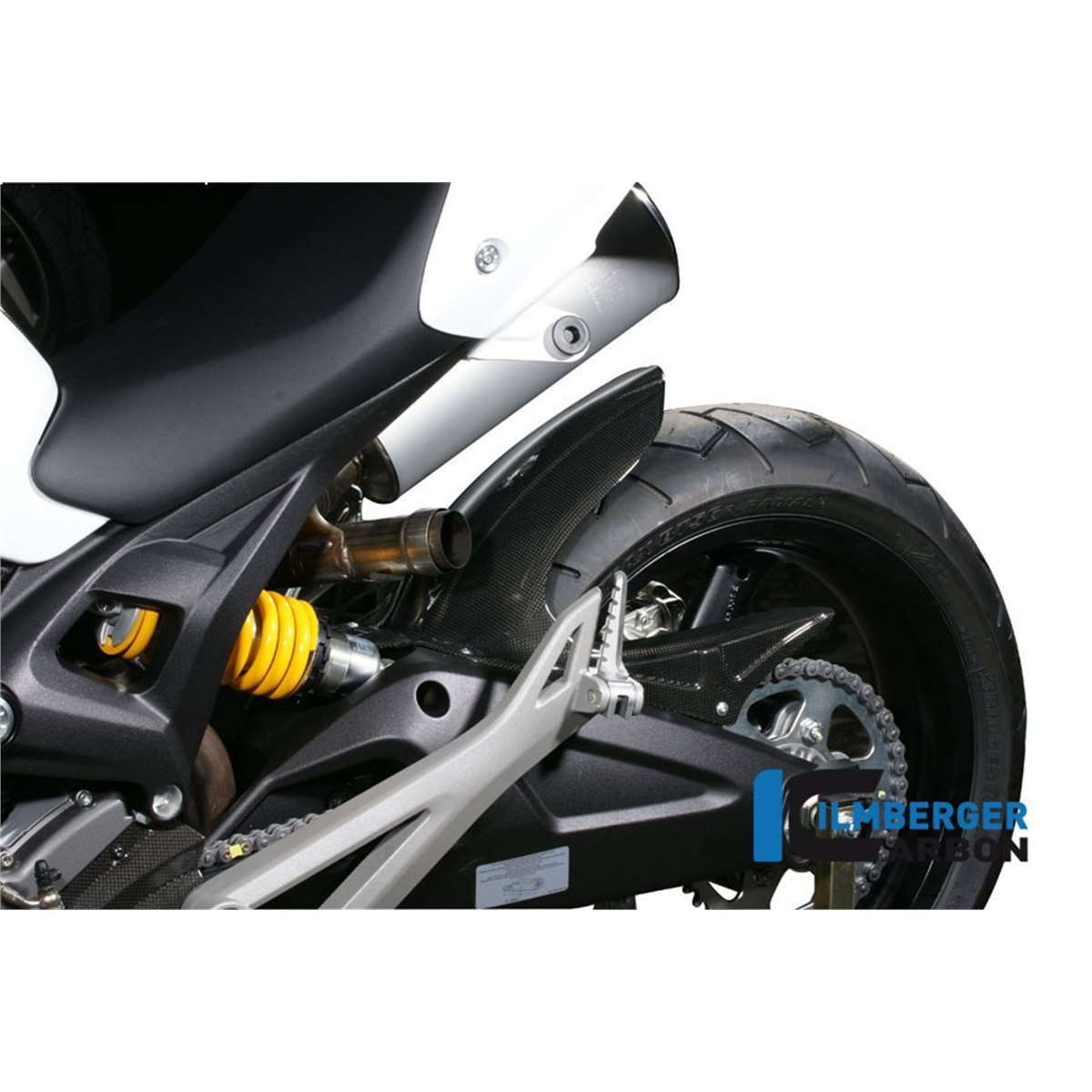 Der hintere Kotflügel in Carbon für die Ducati Monster 696 ersetzt das originale Bauteil unter Verwendung der originalen Befestigungspunkte. Im Vordergrund stehen Gewichtsersparnis (in der Regel Einsparung von ca. 70% im Vergleich zum originalen Bauteil) und höhere Steifigkeit.  Das Carbonteil wurde nach den neuesten Richtlinien im Autoklaven komplett aus Prepreg (siehe FAQ) Material gefertigt und im nächsten Schritt, wie bei uns üblich, zum Schutz gegen Umwelteinflüße mit einer klaren Kunststoffbeschichtung überzogen.
