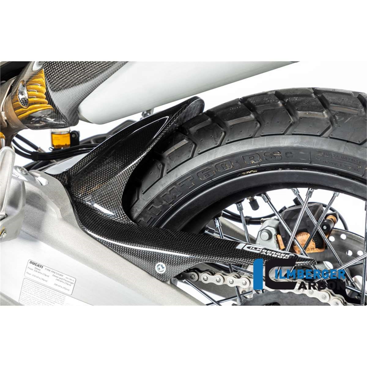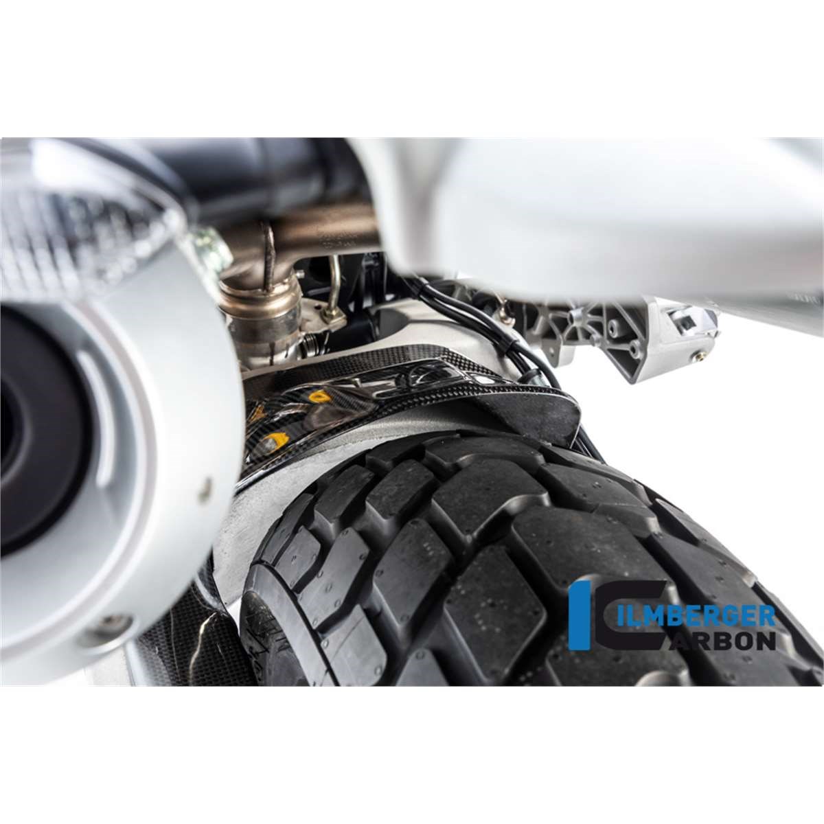 Der hintere Kotflügel in Carbon in glänzender Ausführung für die Ducati Scrambler 1100 ab 2017 wird an vorhandenen Haltepunkten am Fahrzeug aufgeschraubt.