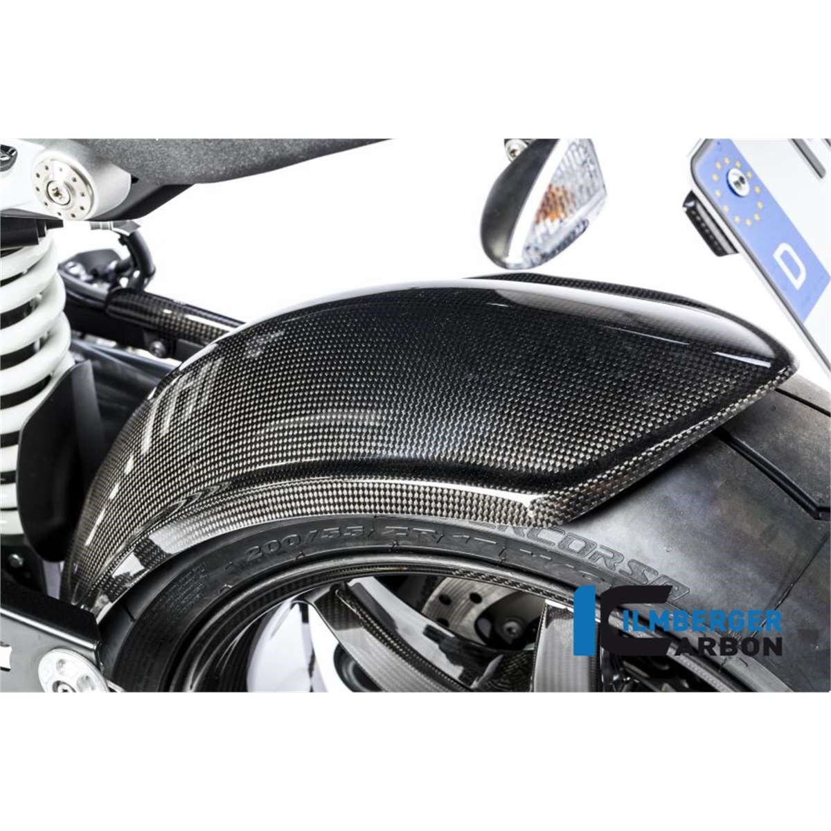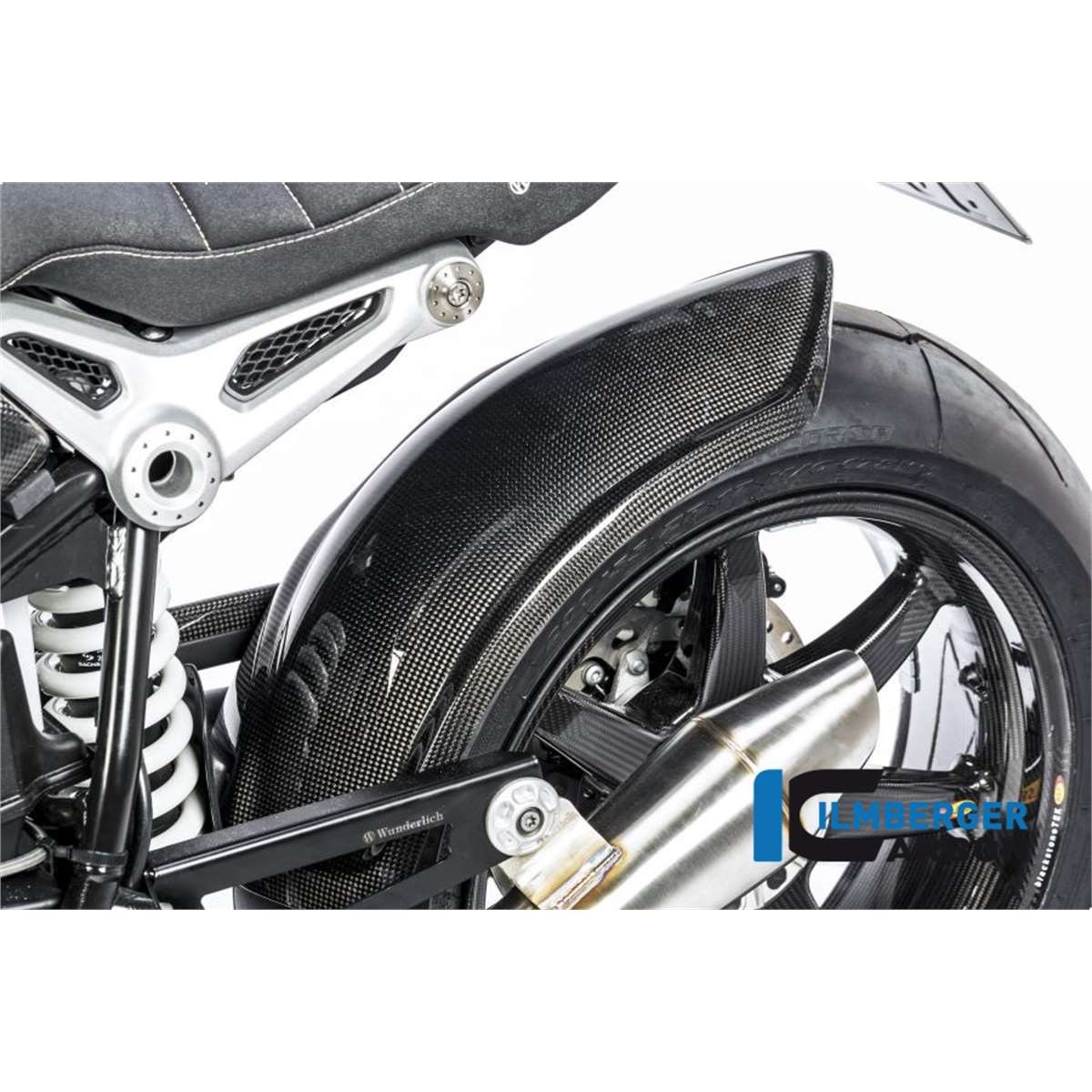 Die spezielle Formgebung der Hinterradabdeckung reduziert die Verschmutzung des Motorrades durch das Hinterrad erheblich. Die jeweilige Form der Abdeckung ist modellbezogen so gewählt, dass serienmäßige Fahrwerks- oder Reifenvarianten berücksichtigt werden. Das Carbonteil wurde nach den neuesten Richtlinien im Autoklaven komplett aus Prepreg (siehe FAQ) Material gefertigt und im nächsten Schritt, wie bei uns üblich, zum Schutz gegen Umwelteinflüße mit einer klaren Kunststoffbeschichtung überzogen.