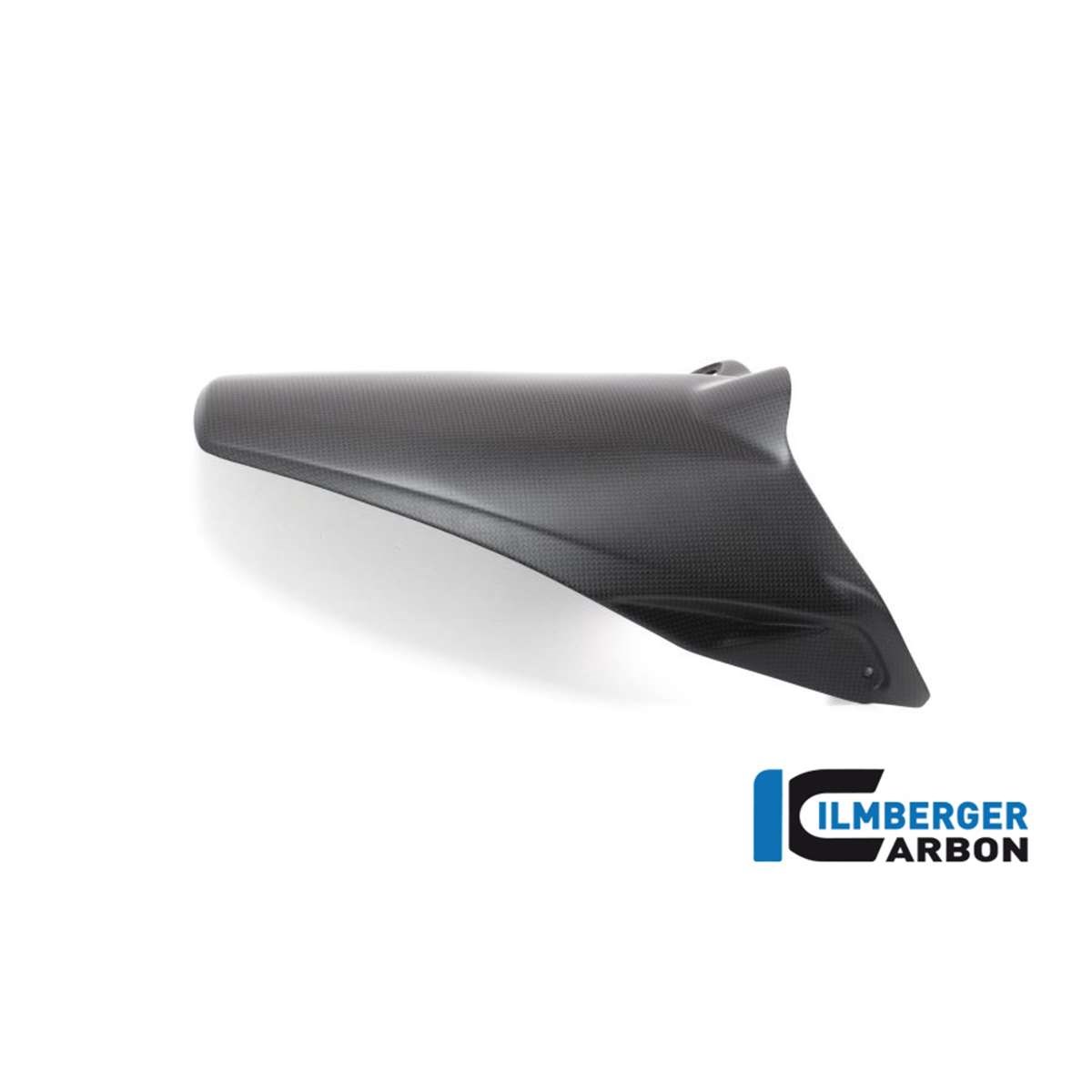 Die Hinterradabdeckng (Kotflügel hinten lange Version) in Carbon für die neue Ducati Monster 1200 und Monster 1200 S ersetzt das originale Bauteil unter Verwendung der originalen Befestigungspunkte. Im Vordergrund stehen Gewichtsersparnis (in der Regel Einsparung von ca. 70% im Vergleich zum originalen Bauteil) und höhere Steifigkeit. Das Carbonteil wurde nach den neuesten Richtlinien im Autoklaven komplett aus Prepreg (siehe FAQ) Material gefertigt und im nächsten Schritt, wie bei uns üblich, zum Schutz gegen Umwelteinflüße mit einer klaren Kunststoffbeschichtung überzogen. Diese Kunststoffbeschichtung übertrifft den sonst üblichen Klarlacküberzug in der Schutzwirkung, Kratzfestigkeit und Beständigkeit enorm. Aber nicht nur technisch kann die Beschichtung punkten, sondern sie unterstreicht auch die dreidimensionale Wirkung der Carbonstruktur nochmals deutlich.