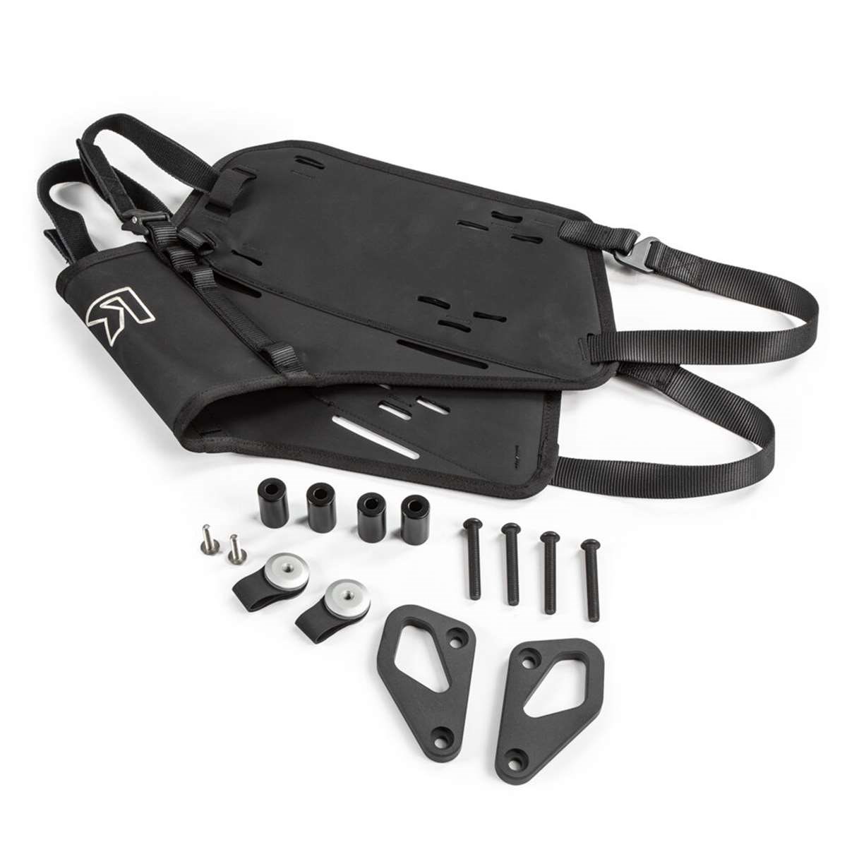 - Das sehr robuste und leichte Trägersystem benötigt keinerlei weiteren Befestigungen, kein Bohren und keine Änderungen am Fahrgestell der 790 Adventure. Das modulare Design bietet die Möglichkeit die Anzahl der transportierten Gepäckstaschen je nach Bedarf anzupassen, für eine Tagesfahrt oder eine längere Adventure-Tour.