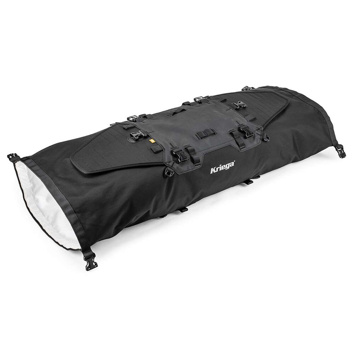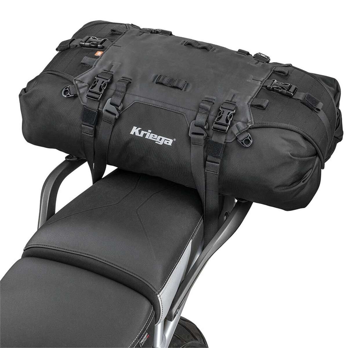 - Die wasserdichte Ladekapazität ist regulierbar von 28 bis 40 Liter. Bei 40 Litern ist die Tasche ideal zum Verstau eines Zeltes, einer Rollmatte oder eines Schlafsacks. Ein auf der Tasche oben angebrachter Tunnel ermöglicht den Transport von Zeltstangen und machen somit den US-40 zum idealen Gepäck für Motorrad-Camping. Auf 28 Liter reduziert ist er ideal zum Verstau von Regenbekleidung oder warmer Bekleidung für einen Kurzausflug.