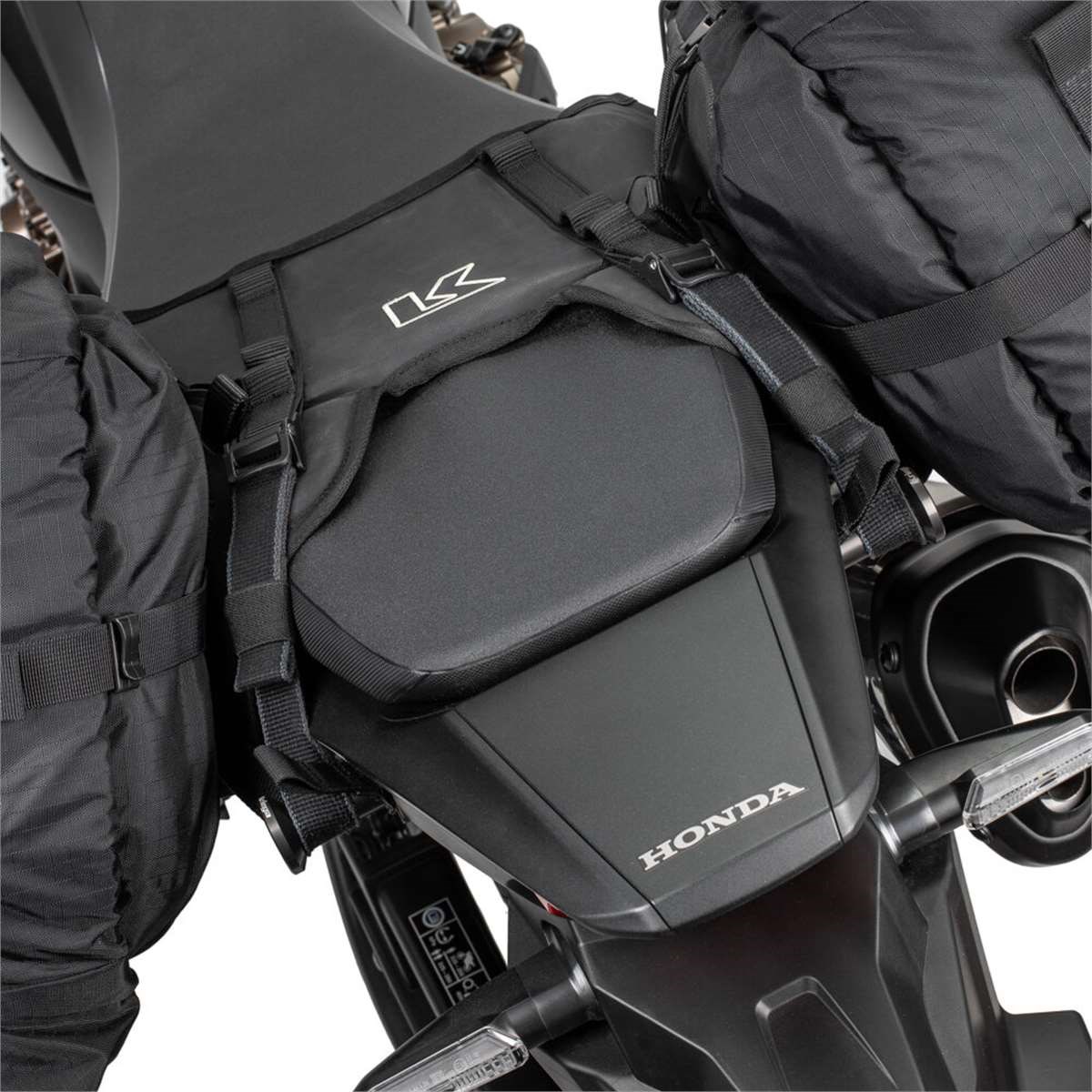 - Die mitgelieferten CRF Bolzen schrauben sich hinter der Sitzbank an den Rahmen bieten 4 Befestigungspunkte für eine einzelne OS-Tasche oder einen US-Drypack. In Verbindung mit den Befestigungspunkten auf der OS-Base ermöglichen sie die Benutzung von 3 oder mehr Taschen und auch die Montage einer einzelnen Tasche ohne die OS-Base.