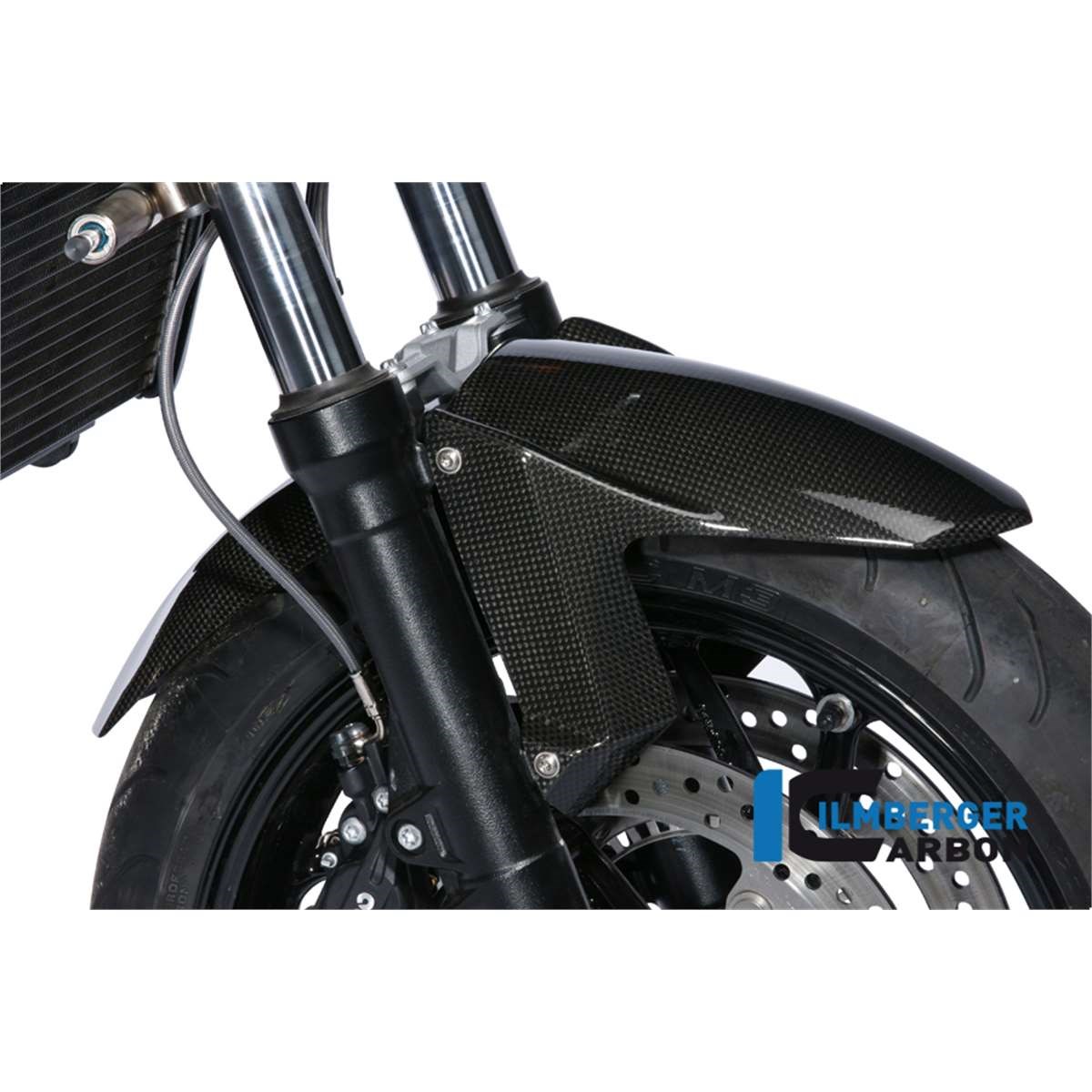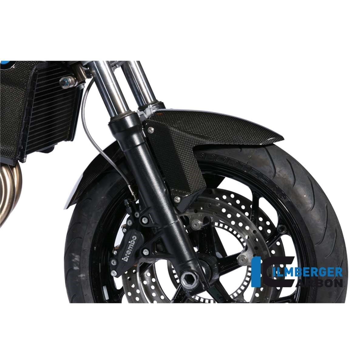 Der vordere Kotflügel für die BMW F 800 R (2009-2014) / GT (2012-aktuell) in Carbon ersetzt das originale Bauteil unter Verwendung der originalen Befestigungspunkte. Im Vordergrund stehen Gewichtsersparnis (in der Regel Einsparung von ca. 70% im Vergleich zum originalen Bauteil) und höhere Steifigkeit.  Das Carbonteil wurde nach den neuesten Richtlinien im Autoklaven komplett aus Prepreg (siehe FAQ) Material gefertigt und im nächsten Schritt, wie bei uns üblich, zum Schutz gegen Umwelteinflüße mit einer klaren Kunststoffbeschichtung überzogen.