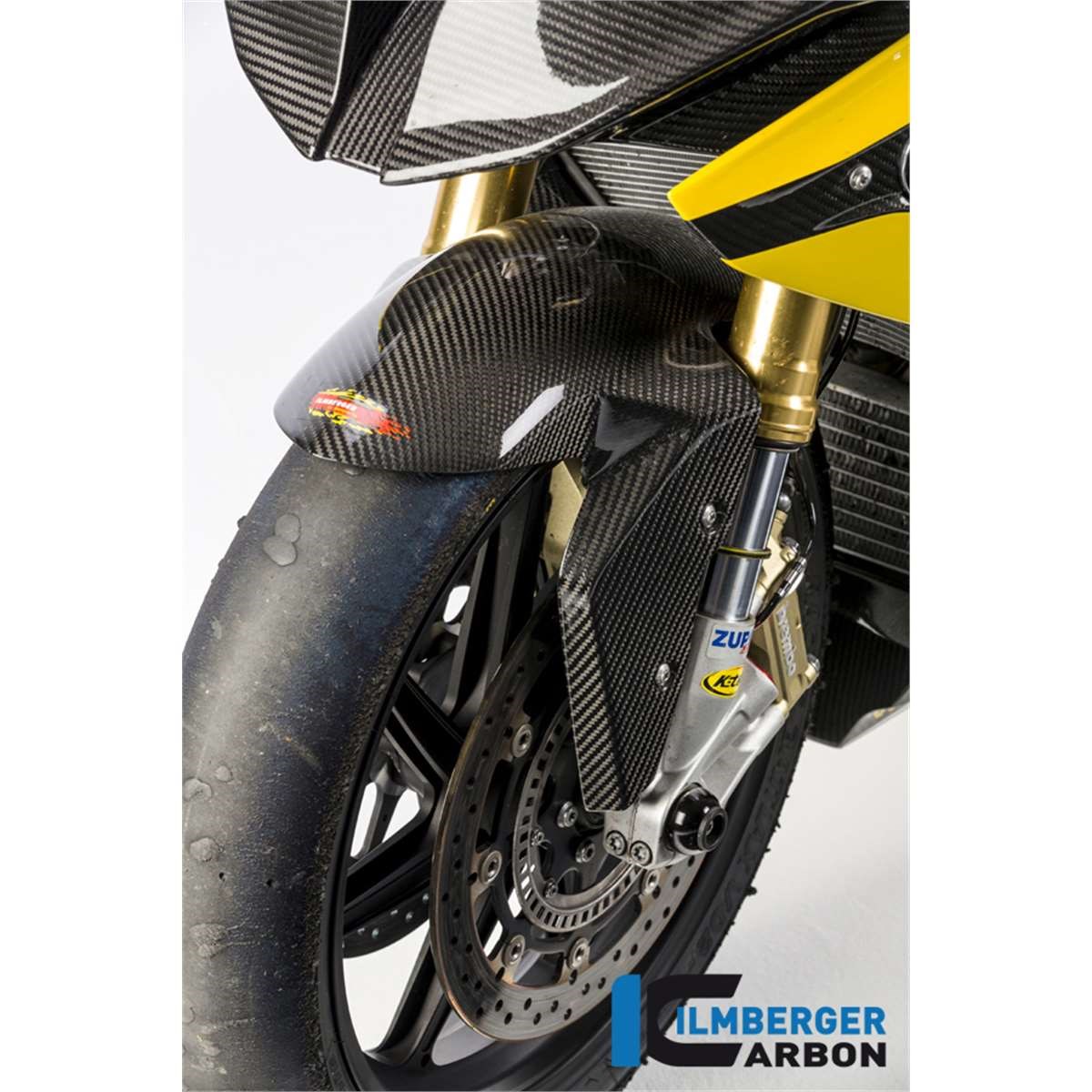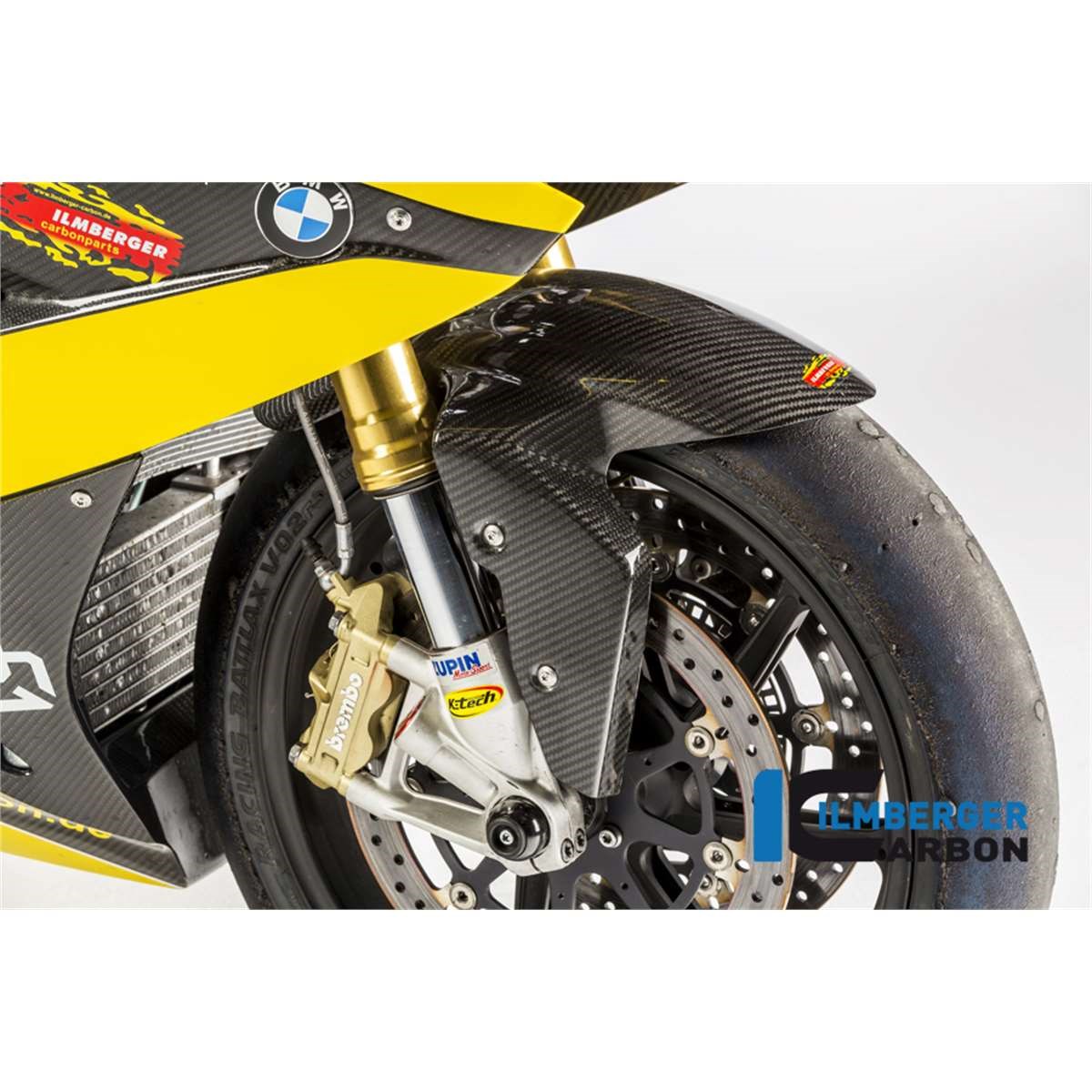 Der vordere Kotflügel in Carbon für die BMW S 1000 RR Stocksport/Racing (2010-aktuell) ersetzt das originale Bauteil unter Verwendung der originalen Befestigungspunkte. Im Vordergrund stehen Gewichtsersparnis (in der Regel Einsparung von ca. 70% im Vergleich zum originalen Bauteil) und höhere Steifigkeit.  Das Carbonteil wurde nach den neuesten Richtlinien im Autoklaven komplett aus Prepreg (siehe FAQ) Material gefertigt und im nächsten Schritt, wie bei uns üblich, zum Schutz gegen Umwelteinflüße mit einer klaren Kunststoffbeschichtung überzogen.