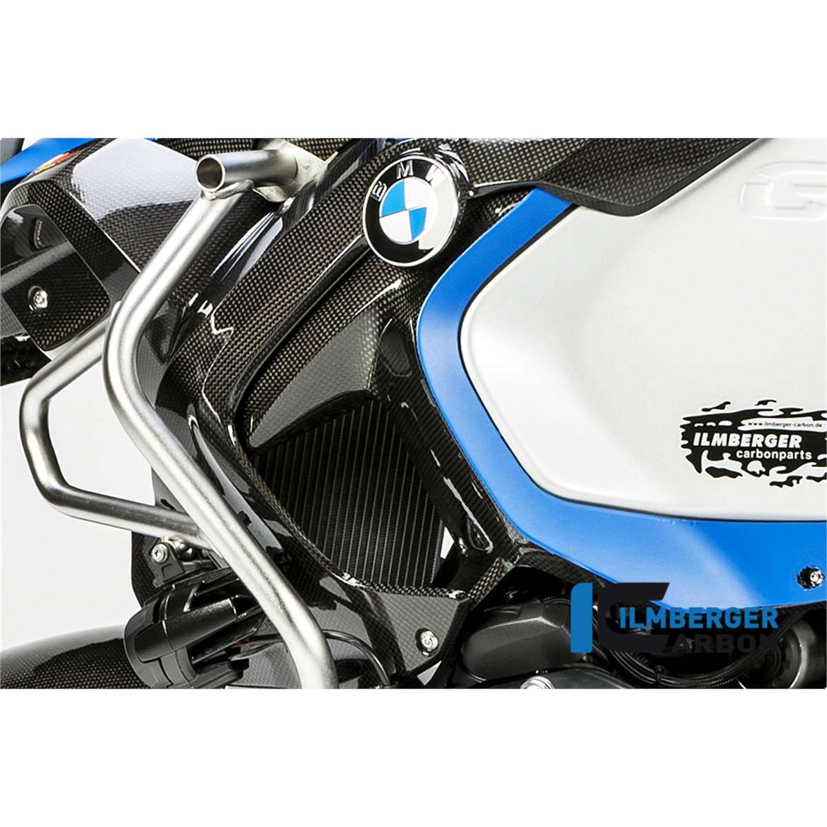 Die Luftauslassverkleidung in Carbon für die BMW R 1200 GS (LC) Adventure ab 2014 ersetzt das originale Bauteil unter Verwendung der originalen Befestigungspunkte. Im Vordergrund stehen Gewichtsersparnis (in der Regel Einsparung von ca. 70% im Vergleich zum originalen Bauteil) und höhere Steifigkeit. Das Carbonteil wurde nach den neuesten Richtlinien im Autoklaven komplett aus Prepreg (siehe FAQ) Material gefertigt und im nächsten Schritt, wie bei uns üblich, zum Schutz gegen Umwelteinflüße mit einer klaren Kunststoffbeschichtung überzogen. Diese Kunststoffbeschichtung übertrifft den sonst üblichen Klarlacküberzug in der Schutzwirkung, Kratzfestigkeit und Beständigkeit enorm. Aber nicht nur technisch kann die Beschichtung punkten, sondern sie unterstreicht auch die dreidimensionale Wirkung der Carbonstruktur nochmals deutlich.