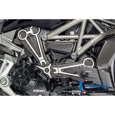 Der Lufteinlasskanal an der Zahnriemenabdeckung in Carbon in glänzender Ausführung für die Ducati XDiavel ab 2016 wird an vorhandenen Haltepunkten am Fahrzeug aufgeschraubt.